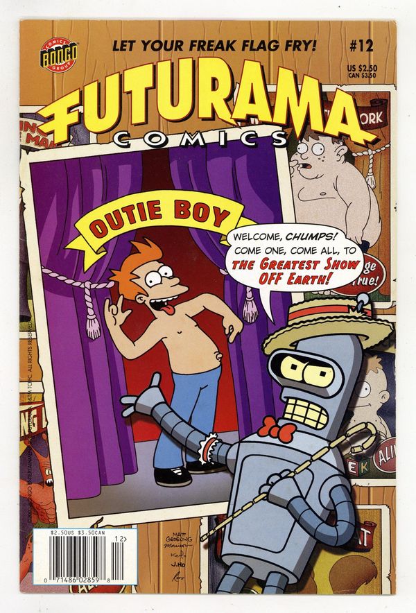 $19.50by Rogers & Delaney Fry, Leela, Bender, and Zoidberg are taken for sideshow freaks, literally, in a traveling intergalactic circus. Bender has dreams of center ring stardom, and Fry finds what would appear to be the love of his life...with the Bearded Lady. FC, 32pg $2.50 Cover price $2.50.