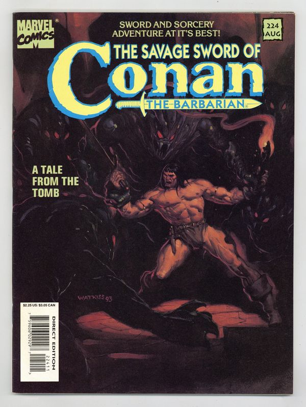 $9.70Conan stars in "The Dwellers Under the Tombs." Script by Roy Thomas, art by John Watkiss. Conan and Red Sonja star in "Dragons of the World's Dawn." Script by Thomas, pencils by Mike Docherty, inks by E.R. Cruz. Fred Harper pin-up. Watkiss cover. Cover price $2.25.
