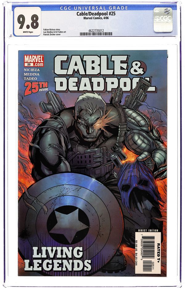 Written by FABIAN NICIEZA Pencils & Cover by PATRICK ZIRCHER 'LIVING LEGENDS' Our greed for knowledge recreated his telepathy. Our quest to confine him recreated his telekinesis. He has forged a paradise haven that threatens to destabilize countless governments and religions. One man wants to find out what Cable's intentions are before it's too late. Captain America guest stars in a special 25th issue story that debuts the new Cable... or is that the old Messiah? Cover price $2.99.