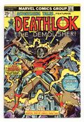 This issue not only marks George Perez's first pro comic art, but the first appearance of Deathlok! Cover pencils by Rich Buckler, inks by Klaus Janson. A Cold Knight's Frenzy, script by Rich Buckler (Plot; Concept) and Doug Moench (Script), pencils by Rich Buckler, inks by Rich Buckler (Primary Inks), Klaus Janson (Ink Assist), Al Milgrom (Ink Assist), and Mike Esposito (Ink Assist); Deathlok is shown to be a robot with a human mind that has the ability to override its programming; Deathlok has a flashback showing that his old army buddy Major Simon Riker is responsible for his creation. Stan Lee's Soapbox, art by Rich Buckler. Creation of Deathlok article, art by Rich Buckler. Promo for Giant-Size Spider-Man #1. Deathlok creation satire, script by Doug Moench, pencils by George Perez, inks by Mike Esposito; George Perez' first published work. Marvel Value Stamp #68 featuring Daimon Hellstrom [Son of Satan]. 36 pgs. $0.25. Cover price $0.25.