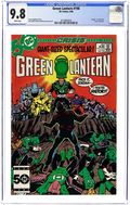 Crisis on Infinite Earths crossover. Giant-size issue. "1" Hal Jordan and Guy Gardner team up to fight the Weaponers of Qward. The Green Lantern Corps attempts to stop the destruction of the Anti-Monitor's birthplace, since it would give him more power. Script by Steve Englehart, pencils by Joe Staton, inks by Bruce Patterson. Cover by Staton and Patterson. Cover price $1.25.