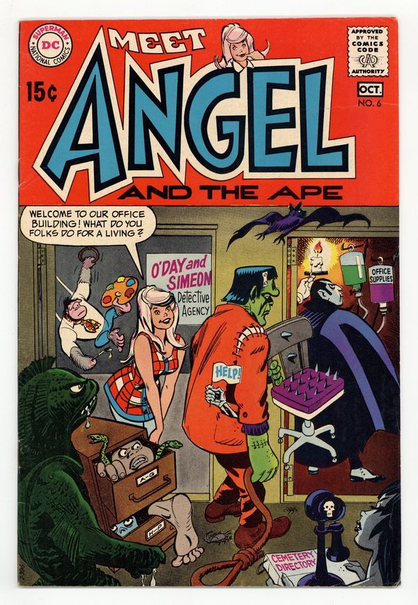 $18.50Cover pencils by Bob Oksner. The Robbing Robot, script by John Albano, pencils by Bob Oksner, inks by Wally Wood; Angel and Sam help Professor Eightstein regain his stolen robot. Never Trust a Doll text story by Ted Udall [ as Charles King], art by Joe Orlando. The Ape of 1,000 Disguises! (Would You Believe Four?), pencils by Bob Oksner, inks by Wally Wood; Sam doesn't trust Angel's date, so he follows them in disguise(s). Untitled Real Ape one-page strip starring Sam Simeon and Batman, script and art by John Albano. 36 pgs. $0.15. Cover price $0.15.
