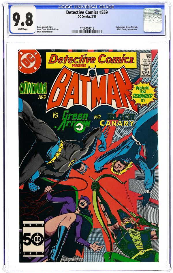 Cover by Brian Bolland. "It Takes Two Wings to Fly," script by Doug Moench, pencils by Gene Colan, inks by Bob Smith; Batman and Catwoman team up with Green Arrow and Black Canary to stop a chemical corporation whose influence reaches from Star City to Gotham. 36 pgs., full color. $0.75. Cover price $0.75.