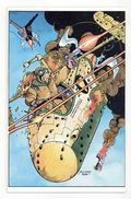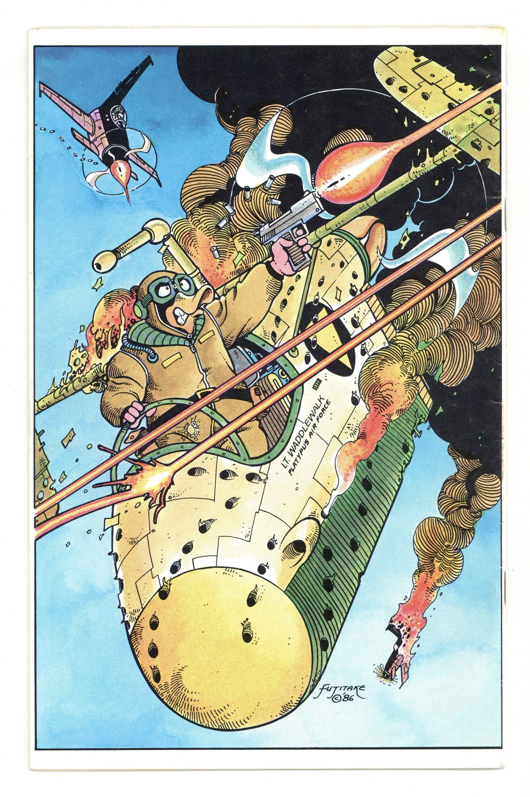 Published Jul 1987 by Fantagraphics.$105.00First printing. A duel puts Stan Sakai's rabbit samurai in an introspective mood, and he recalls his early combat training with the lion-maned Sensei Katsuichi. Parts 1 and 2 of Samurai. Story, art and cover by Sakai, plus Waddlewalk by Dennis Fujitake. Black and white; 32 pages. Other titles featuring Usagi Yojimbo include Albedo, Doomsday Squad #3 and Space Usagi. NOTE: Some issues from #1-10 were reprinted. Reprints are so noted in the reprint edition's indica. Cover price $2.00.
