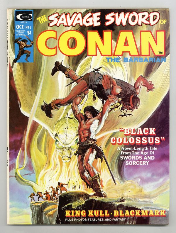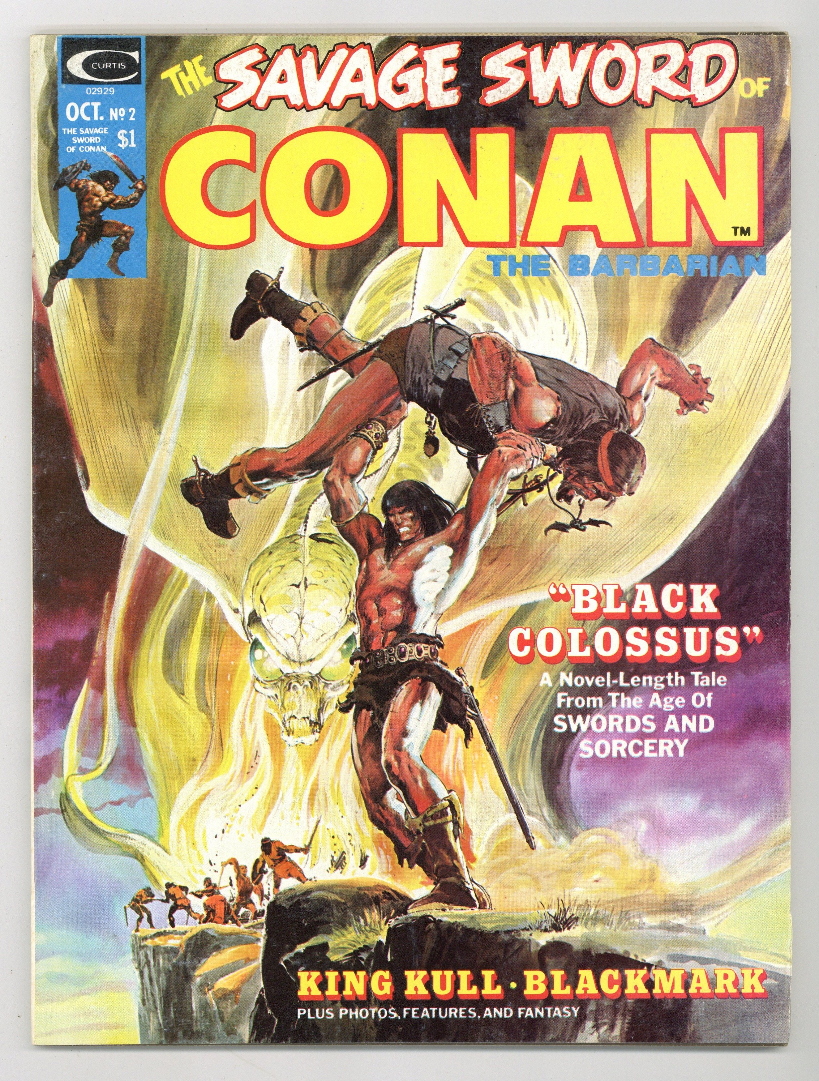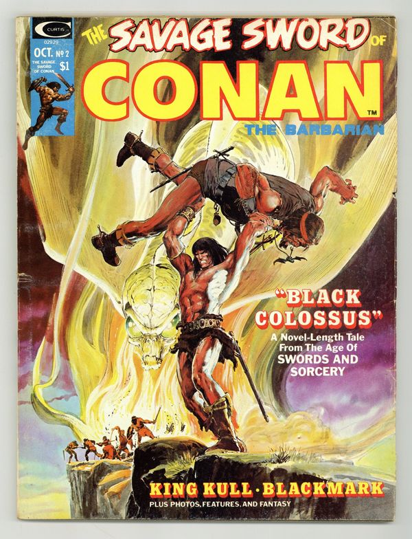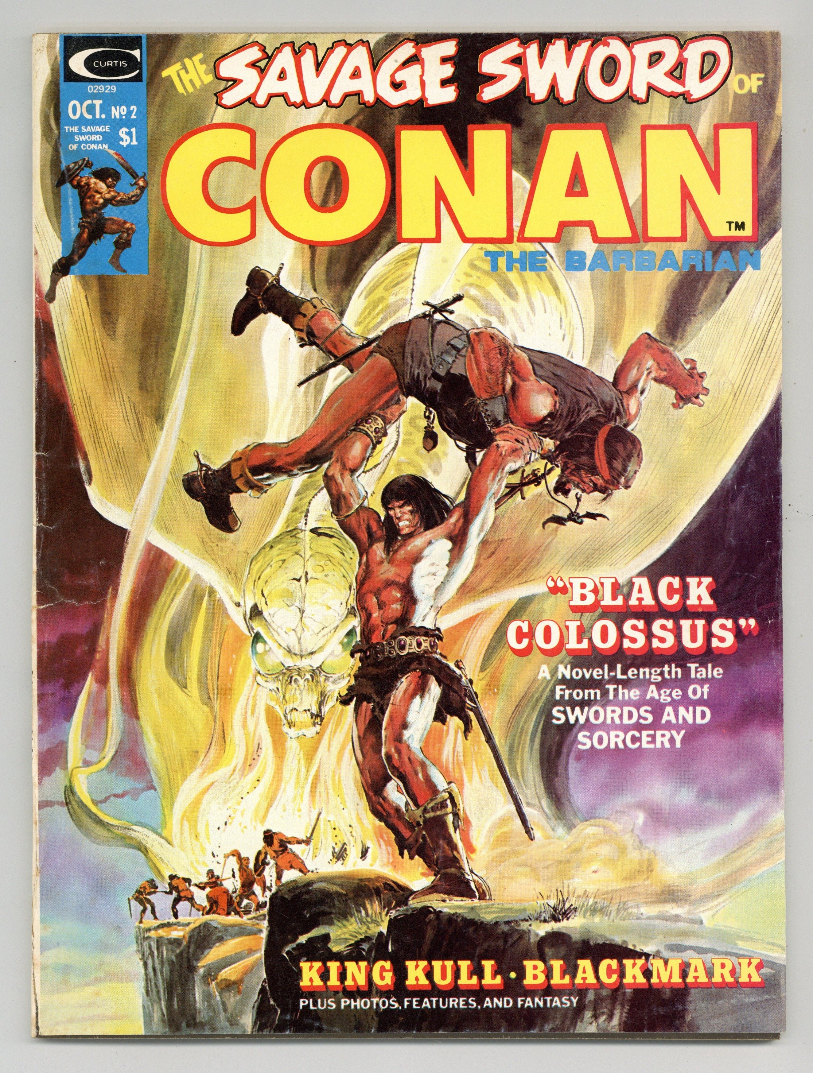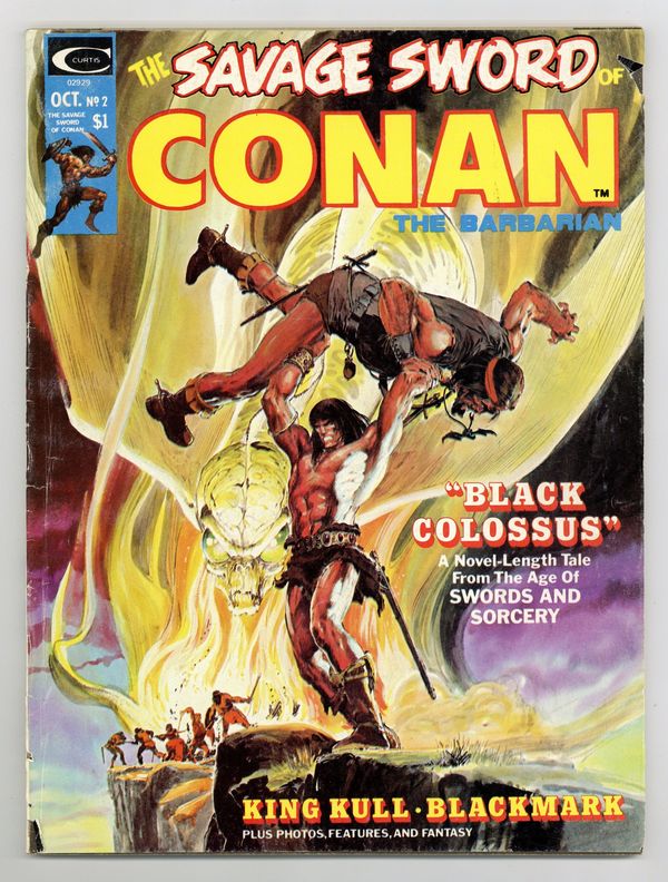 Conan stars in "Black Colossus." Script by Roy Thomas, pencils by John Buscema, inks by Alfredo Alcala. Adapted from the story by Robert E. Howard. Also in this issue: "Blackmark," script and art by Gil Kane (reprinting chapter 2 from the Bantam Books paperback); a King Kull/Brule story, "The Beast From the Abyss," script by Steve Englehart, pencils by Howard Chaykin, inks by the Crusty Bunkers (Neal Adams, Russ Heath, and others, probably including Dick Giordano, Ralph Reese, and Alan Weiss); and "Chronicles of the Sword," an article by Lin Carter with illustrations by Alan Weiss, Al Milgrom, and Joe Staton. Letter to the editor from comic writer Ralph Macchio. (Letters page illustrations include Gil Kane/Adams and Barry Windsor-Smith reprinted panels). Mike Zeck frontispiece. Neal Adams cover. Cover price $1.00.