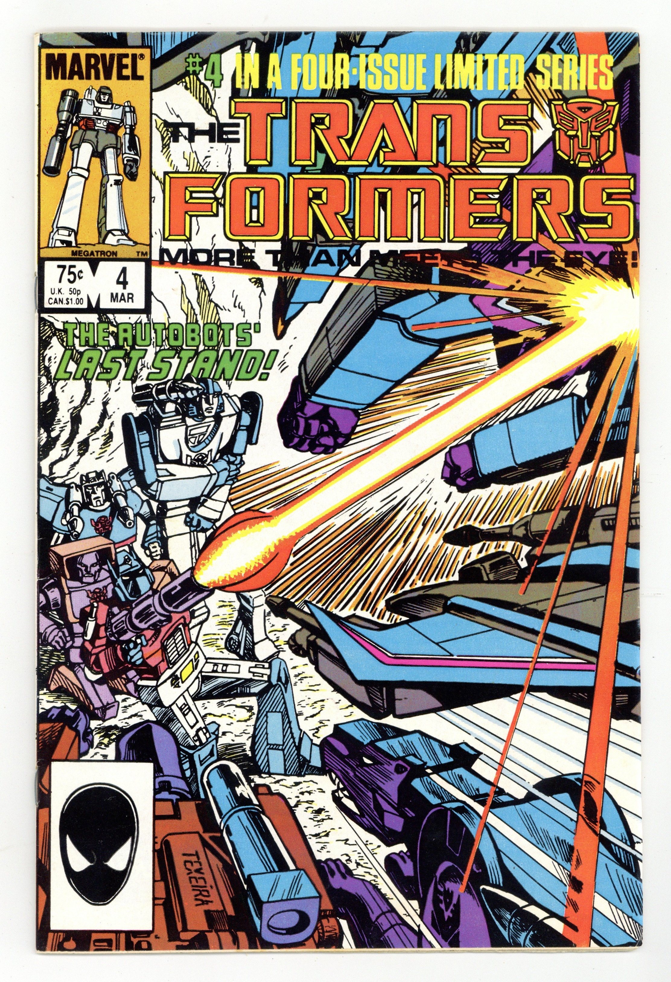 Ends Apr 16 9:25 PM CST Bid History 4 bids Current Bid $32 Your Secret Max Bid If you'd like to bid, please log in or register. First Printing. Direct Edition. Part 4 of 4. Story by Jim Salicrup. Art by Frank Springer, Ian Akin and Brian Garvey. Cover by Mark Texeira. It's the Autobots' last stand. Low on fuel and out matched, these benevolent Transformers fall before their oppressor rivals, the vile Decepticons. This story's end proves one thing...the good guys don't always win. This is a first printing. All 2nd or 3rd printings have a 2nd, 3rd printing notice on inside at bottom of indicia on first/splash page. 2nd printings were done for most issues from #1 to #9. Cover price $0.75.