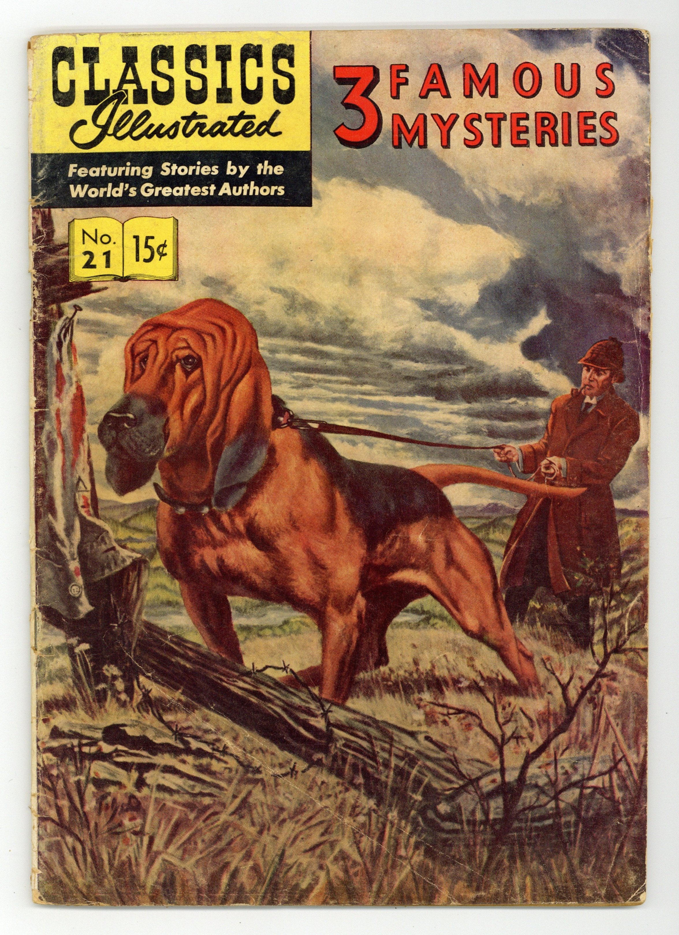 Published Apr 1945 by Classics Illustrated.$22.003 Famous Mysteries, 7th Printing, Painted Cover. (HRN 114). Cover price $0.15.
