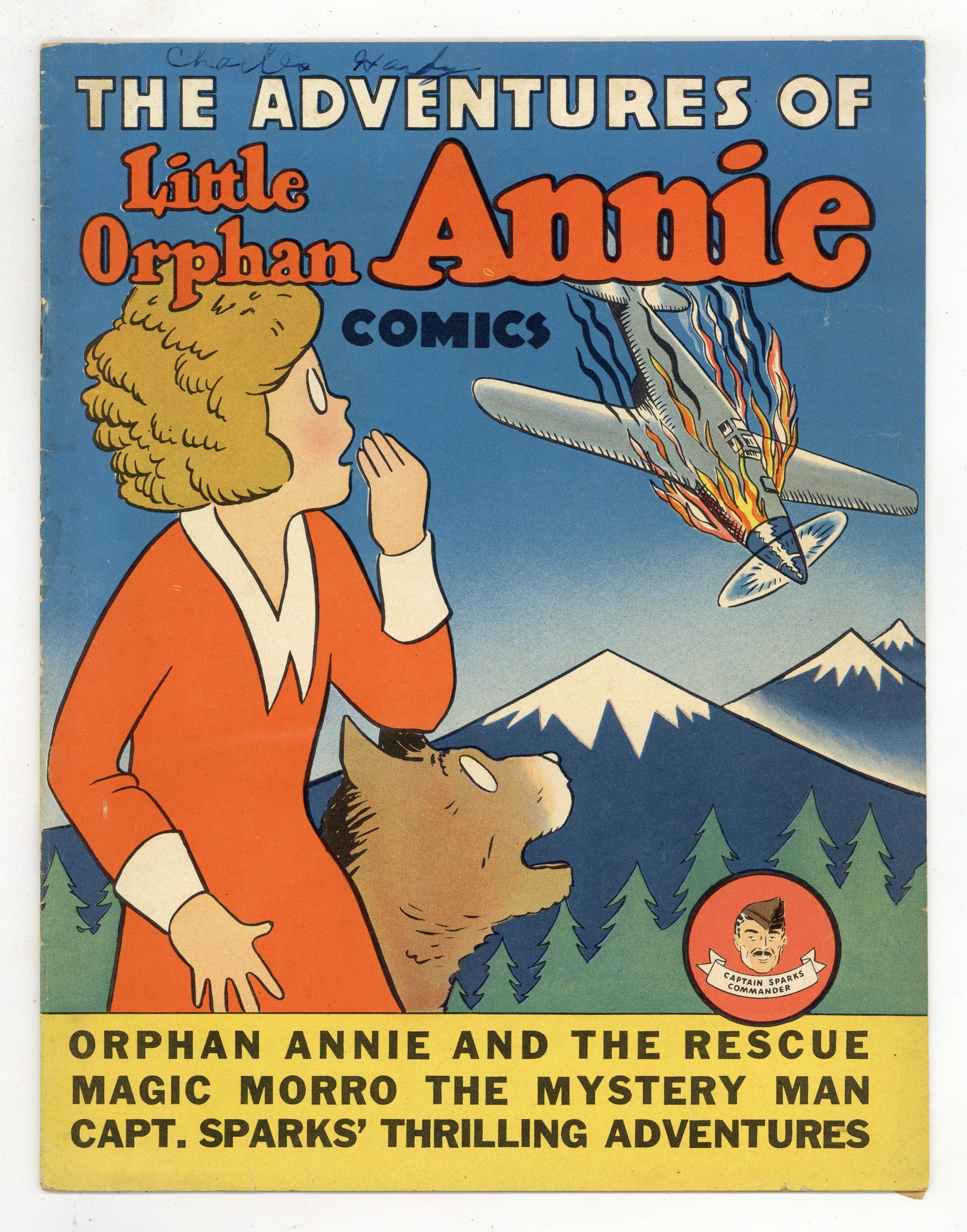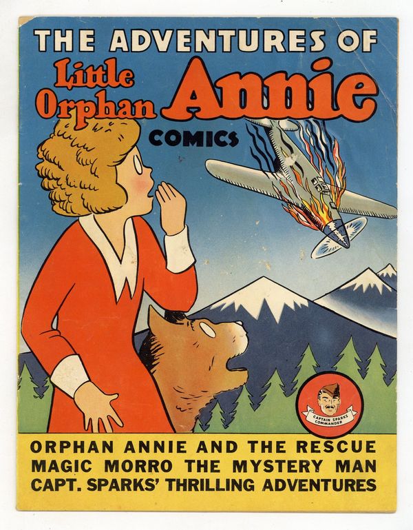 The Adventures of Little Orphan Annie: Orphan Annie and the Rescue. A Quaker Oats Sparkies cereal giveaway that reprints Orphan Annie and Magic Morro adventures. Annie is abducted by the sinister Axel and the kind-hearted Dona Dolores. Also, the adventures of Captain Sparks, a Captain Midnight-like character from the Annie radio show, and Magic Morro, a magician hero. 20 pages, Full Color.