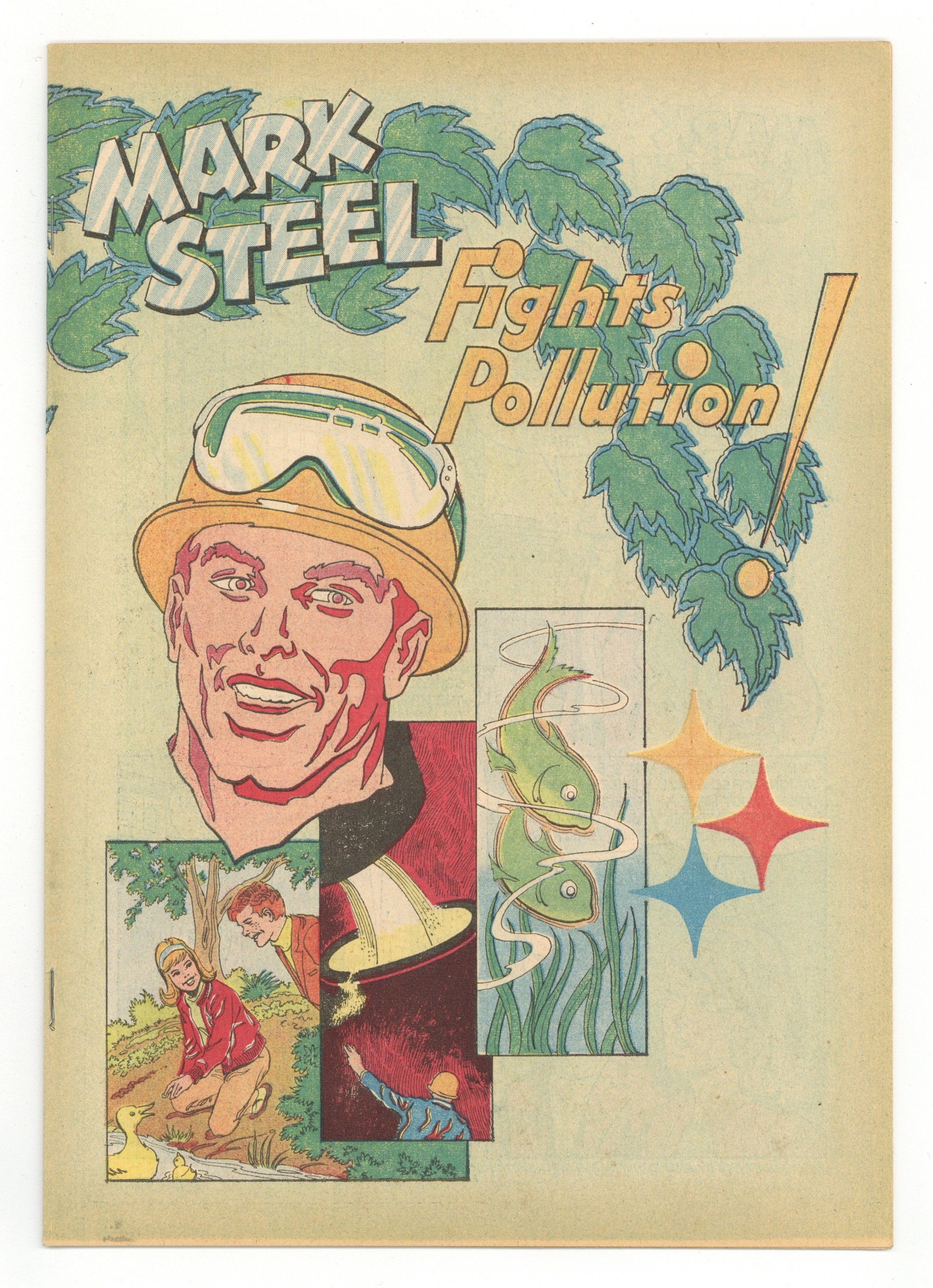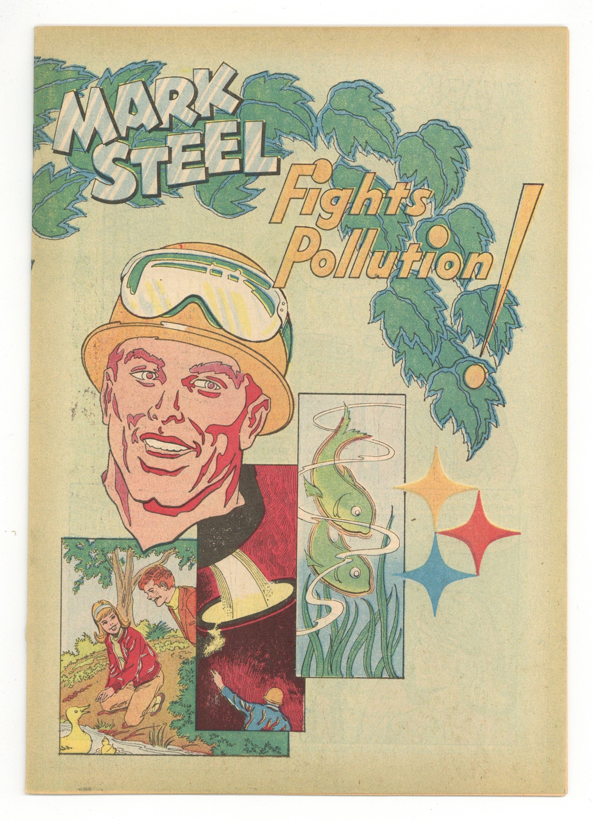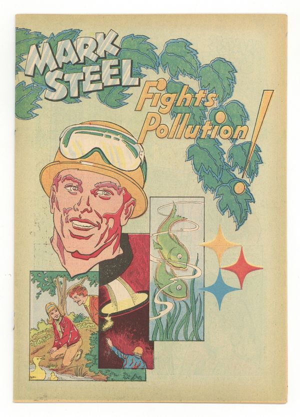 Mark Steel Fights Pollution! (1972) is a promotional comic book published by the American Iron & Steel Industry. Part Neal Adams art (layouts?). Part Alan Weiss art? 24 pages, full color, 6.75-in. x 10-in., newsprint, with no cover price.