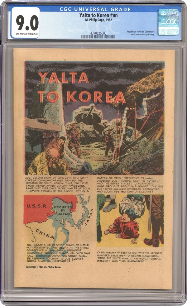 Cold War era anti-communism give-away-comic. Distributed by the Republican National Committee. Newsprint, 8 pages, full color. Cover price $0.10.
