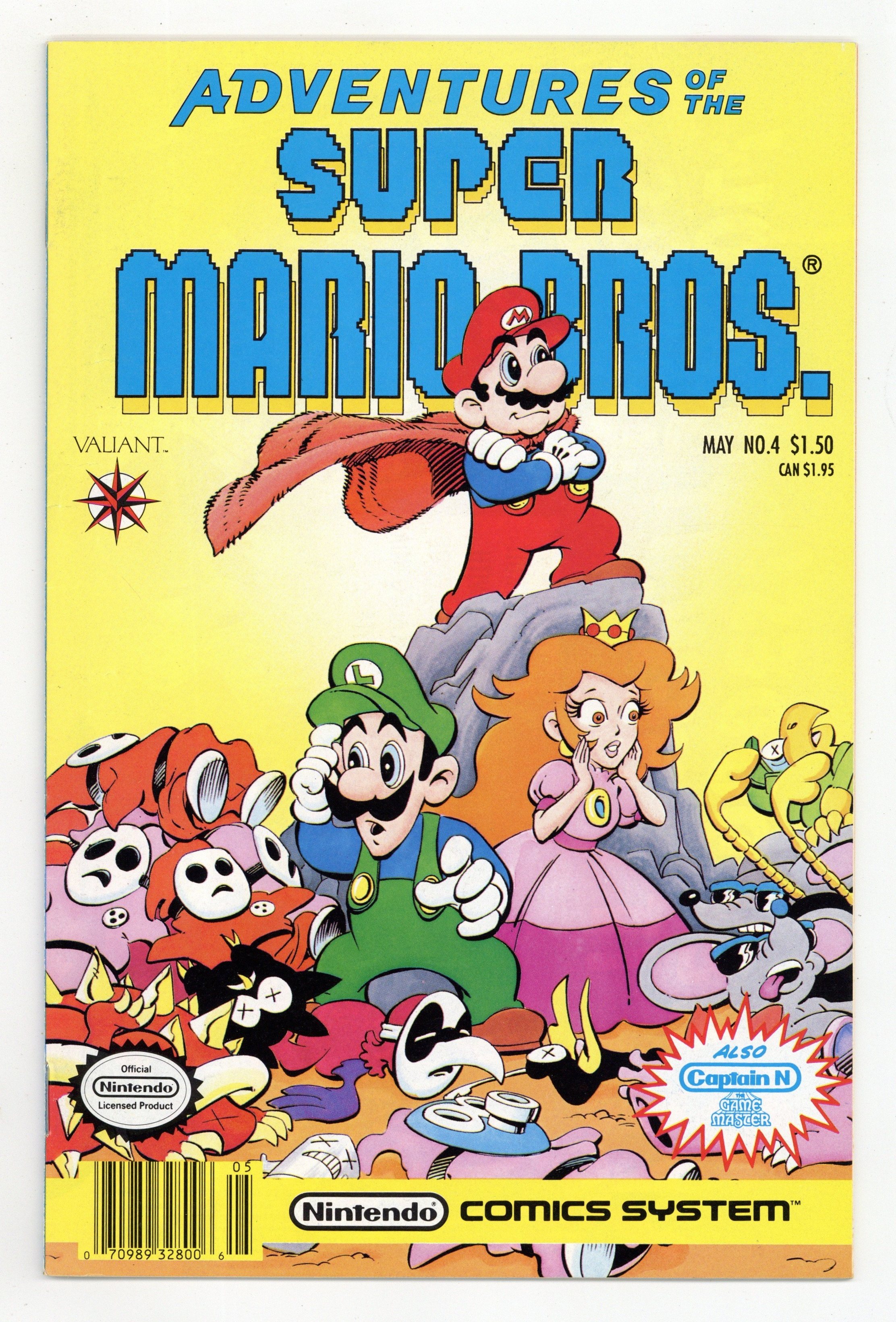 $28.00Story and art by Bill Valley, Mark McClellan, George Wildman, P. Zorito, Jade, Kingman Huie. While sleepwalking, Mario believes he's Dirk Drain-Head, his comic book hero, and goes out to rescue Toad who's been kidnapped by Koopa in "Bedtime for Drain-Head". Captain N back-up story. 32 pgs. Full color. $1.50 cover price. Cover price $1.50.