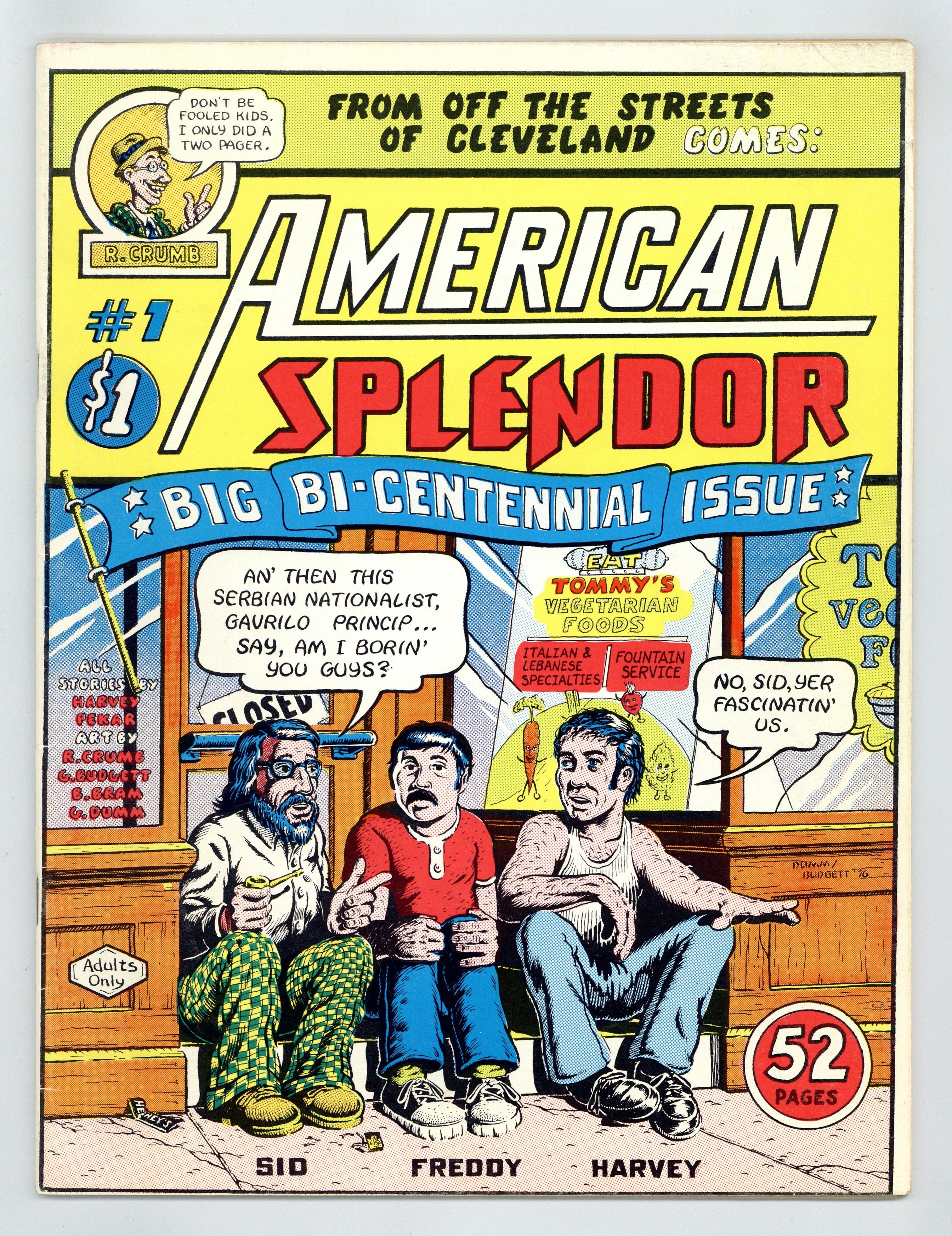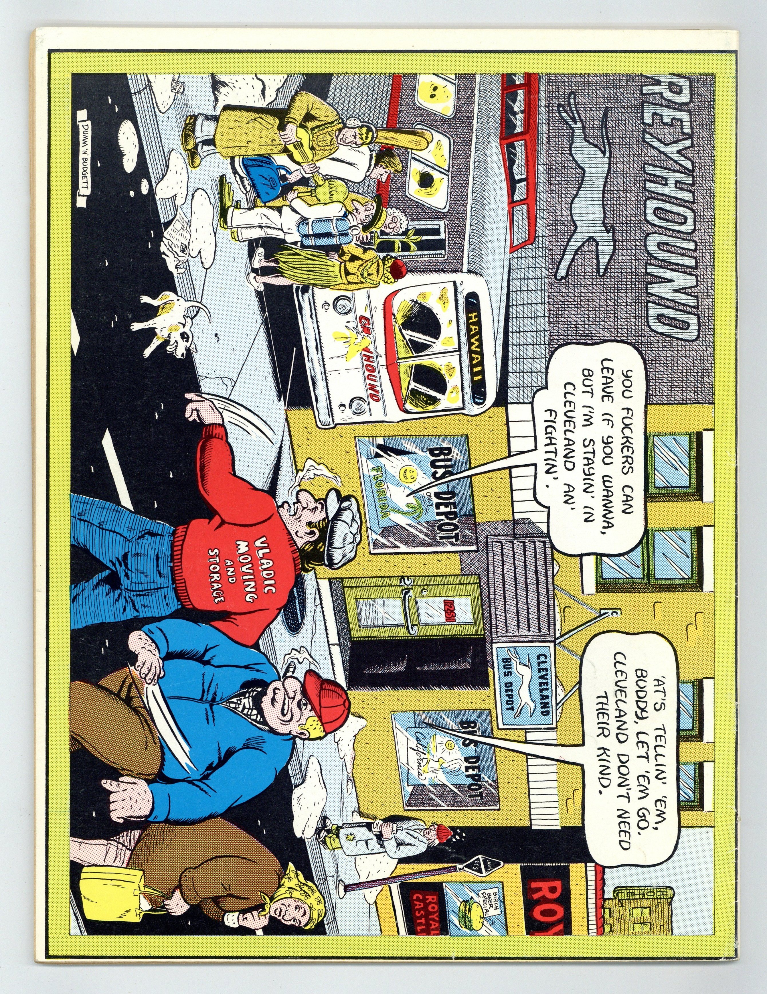 Cover pencils by Gary Dumm, inks by Greg Budgett. 101 Ways To Pick Up Girls, script by Harvey Pekar, pencils by Gary Dumm, inks by Greg Budgett. A Fantasy, script by Harvey Pekar, art by Robert Crumb. How I Spent My Summer Vacation: 1972, script by Harvey Pekar, pencils by Greg Budgett, inks by Gary Dumm; Marv cops off with his friend's girlfriend as they visit, and she invites him to California. The Rank, script by Harvey Pekar, pencils by Lad Jeric (layouts) and Greg Budgett, inks by Gary Dumm. Remembering Be-Ins, script by Harvey Pekar, art by Brian Bram; A look back from 2010 to how the 1960s be-ins weren't all they may have later seemed. Love Story, script by Harvey Pekar, pencils by Gary Dumm, inks by Greg Budgett. 52 pages, B&W. Cover price $1.00.