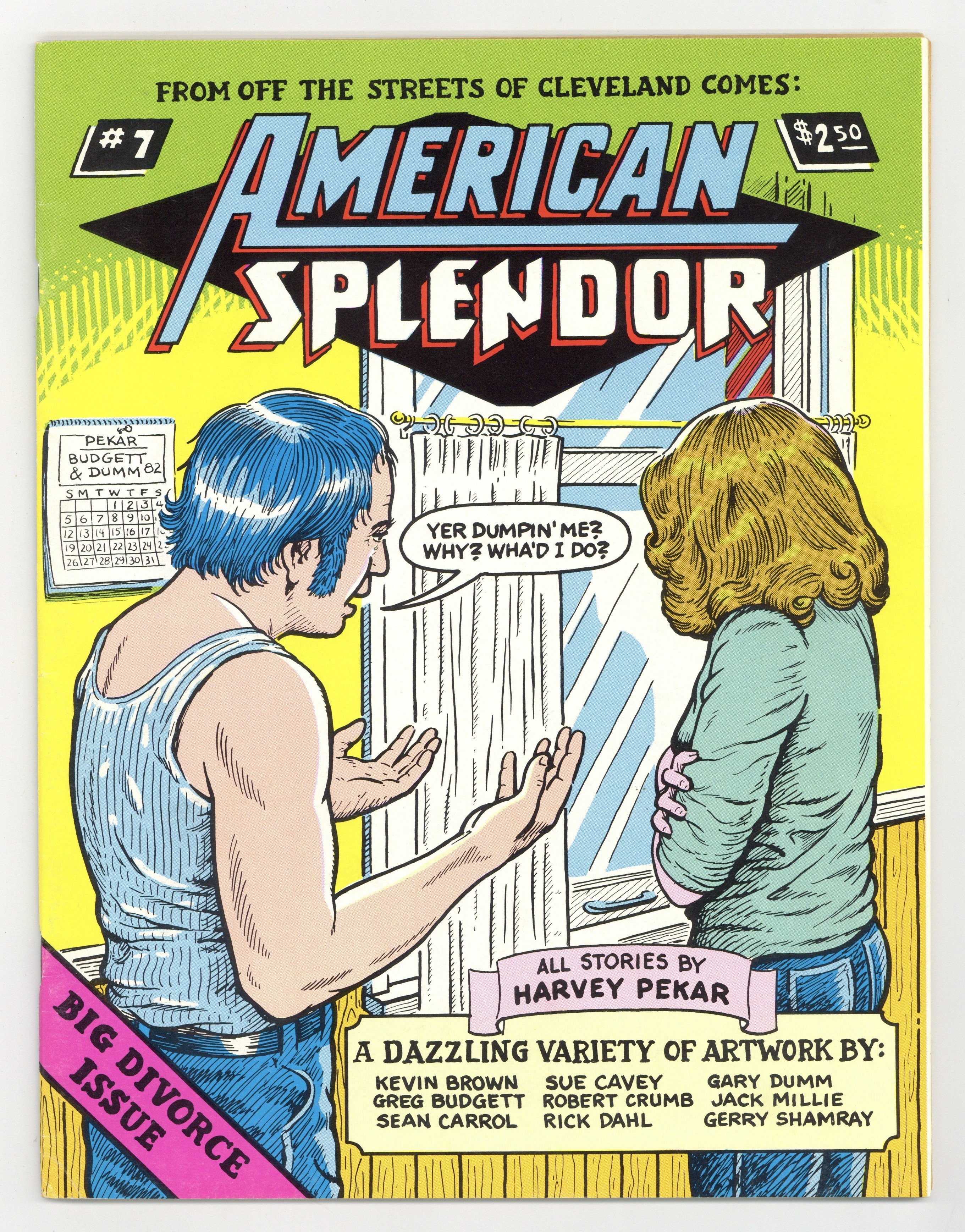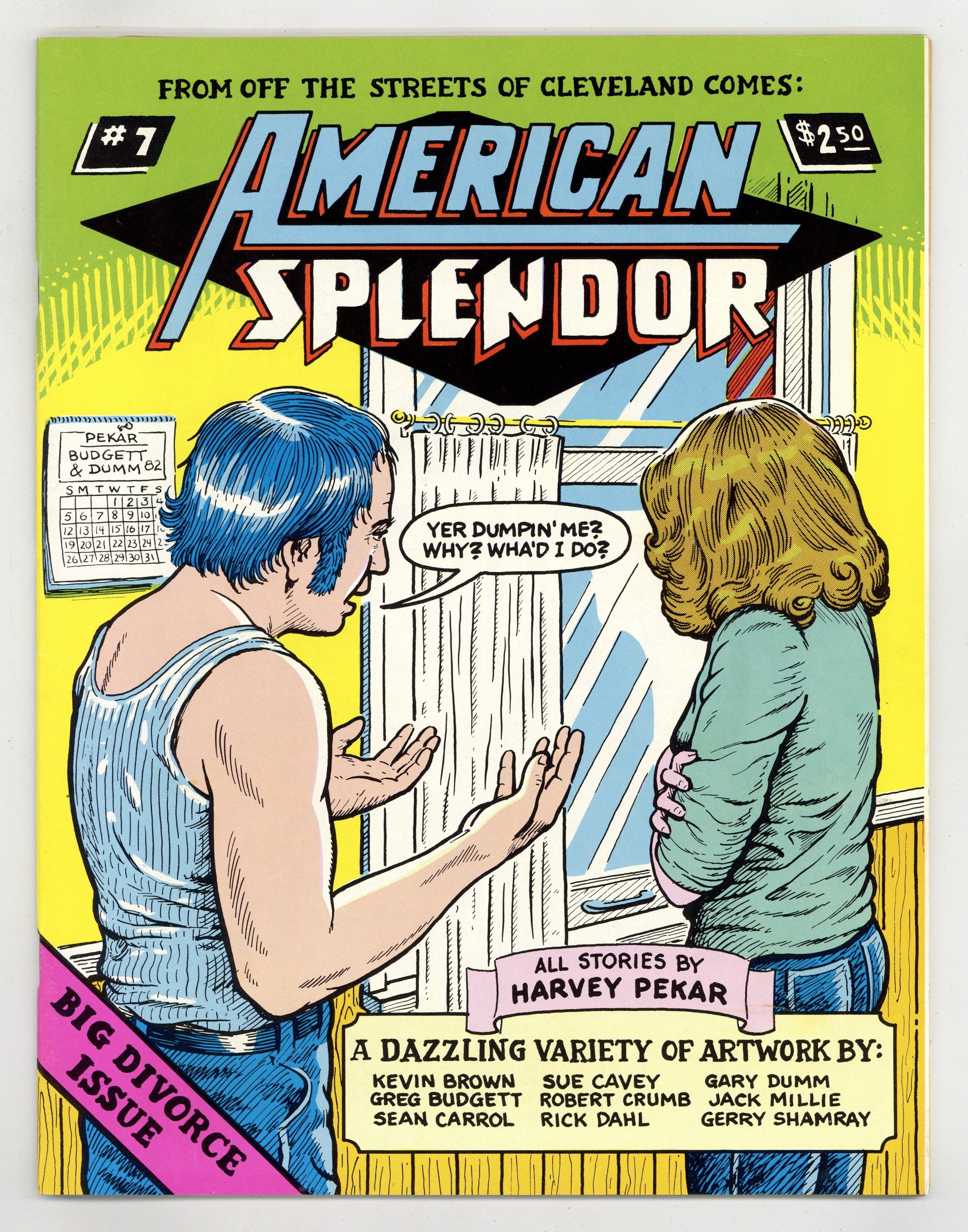 Cover pencils by Greg Budgett, inks by Gary Dumm. The Day Before The Be In, script by Harvey Pekar, pencils by Greg Budgett; inks by Gary Dumm; Harvey goes out shopping, meets with his friend Joe and complains about the LP record he was sent for reviewing. A Dialogue, script by Harvey Pekar, art by Sue Cavey; Harvey contemplates his marriage falling apart. Alice Quinn, script by Harvey Pekar, art by Sue Cavey; Harvey meets a woman he's not seen in twenty years. Spring Sunday Twilight, script by Harvey Pekar, art by Jack Millie; Jim comes to visit. Boston, November 1980, script by Harvey Pekar, art by Kevin Brown; Harvey meets an anarchist with whom he's been corresponding. From Hospital To Library, script by Harvey Pekar, art by Rick Dahl; Harvey meets an outpatient who gives him a lift and pours out his heart. 60 pages, B&W. Cover price $2.50.