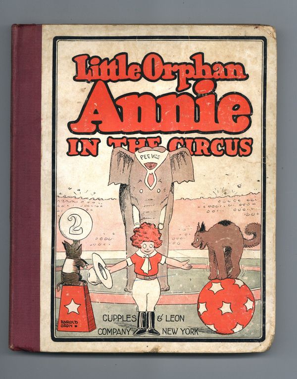Starts Jan 3 No dust jacket. Little Orphan Annie in the Circus (1927), written and illustrated by Harold Gray, is a comic published by Cupples & Leon Company. It is book 2 in the Little Orphan Annie book series and reprints 1926 strips. Follow the adventures of Little Orphan Annie as she tries to make it big in the circus. 92 pages, squarebound, color cover with black and white illustrations, 6-in x 8.75-in., no cover price.