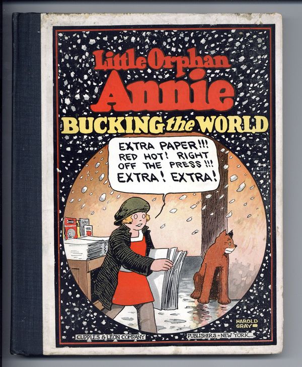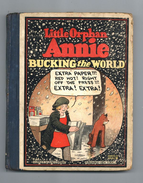 Tags: Platinum AgePublished 1929 by Cupples & Leon.$94.00No dust jacket. Little Orphan Annie Bucking the World (1929), written and illustrated by Harold Gray, is a comic published by Cupples & Leon Company. Book 4 in the Little Orphan Annie book series and reprints 1928 strips. 92 pages, 6-in x 8.75-in.