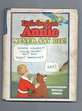 Tags: Platinum AgePublished 1930 by Cupples & Leon.$45.00Hardcover with dust jacket. Little Orphan Annie: Never Say Die! (1930), written and illustrated by Harold Gray. It is book 5 in the Little Orphan Annie book series and reprints 1929 strips. 92 pages, color cover with black and white illustrations, 6-in x 8.75-in., no cover price.
