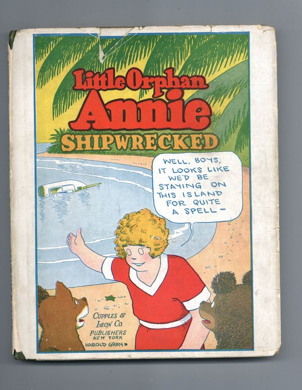 Published 1931 by Cupples & Leon.$240.00With dust jacket. Little Orphan Annie Shipwrecked (1931), written and illustrated by Harld Gray, is a comic published by Cupples & Leon Company. It is book 6 in the Little Orphan Annie book series and reprints 1930 strips. Follow the adventures of Little Orphan Annie as she finds herself on a tropical island. 92 pages, squarebound, color cover with black and white illustrations, 6-in x 8.75-in., no cover price.