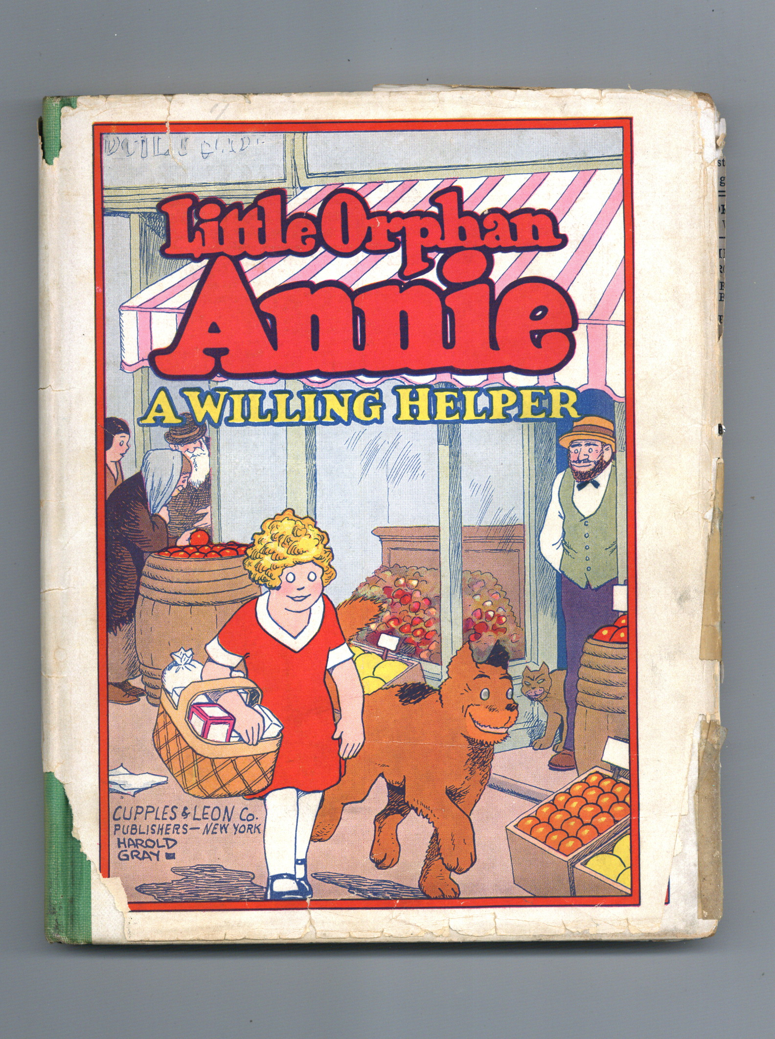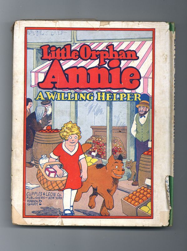 Tags: Platinum AgePublished 1932 by Cupples & Leon.$32.00With dust jacket. Little Orphan Annie A Willing Helper (1932), written and illustrated by Harld Gray, is a comic published by Cupples & Leon Company. It is book 7 in the Little Orphan Annie book series and reprints 1931 strips. 92 pages, squarebound, color cover with black and white illustrations, 6-in x 8.75-in., no cover price.