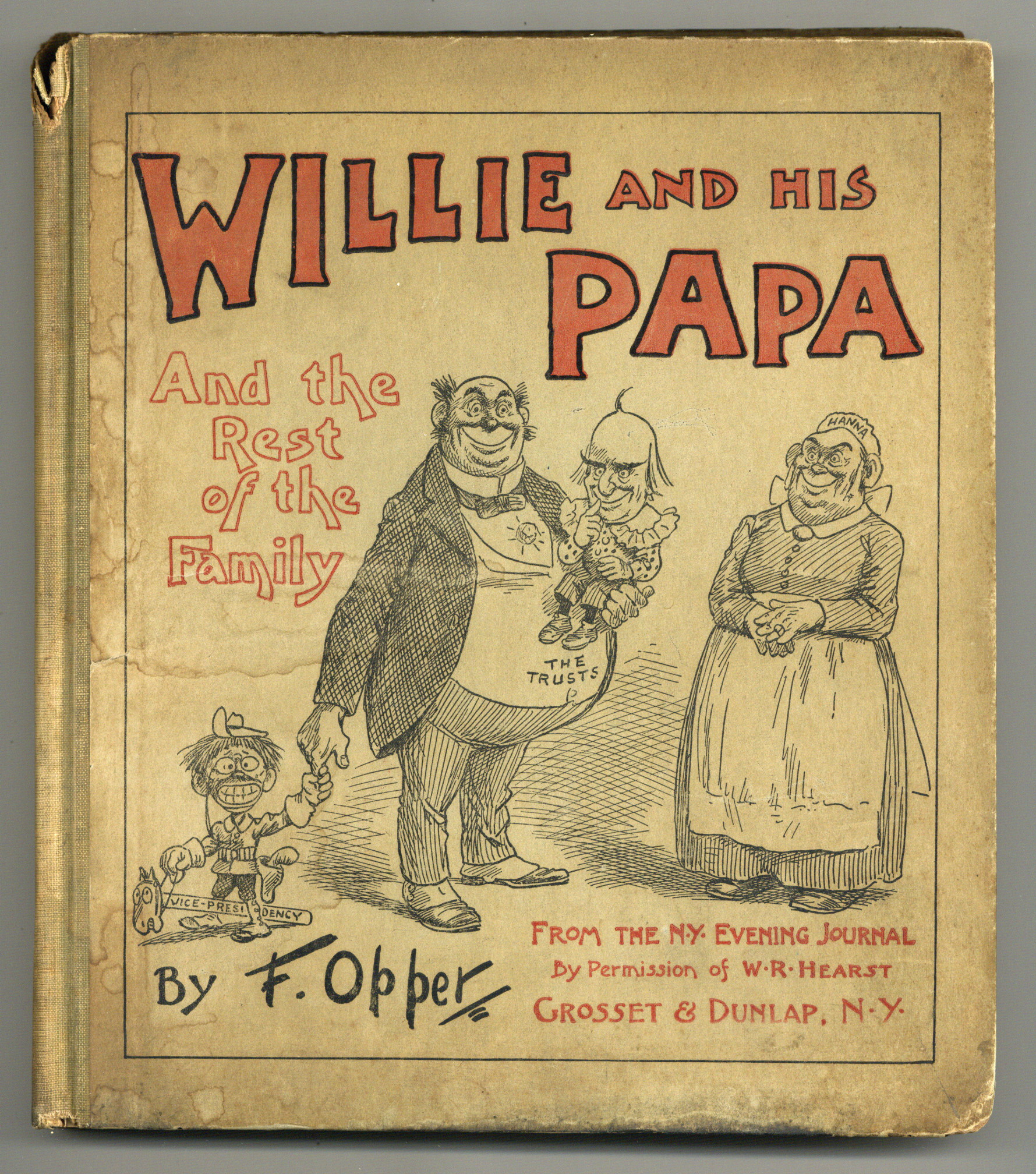 Written and illustrated by Frederick Opper. Opper drew influential political cartoons supporting William Randolph Hearst's campaign against the "trusts" with characters "Willie and Teddy", depicting William McKinley and Theodore Roosevelt, and "Willie and his Papa", satirizing McKinley and "Papa Trusts", and "Nursie", a depiction of Cleveland industrialist Mark Hanna. Hardcover, 8" x 9.25", 100 pages, B&W