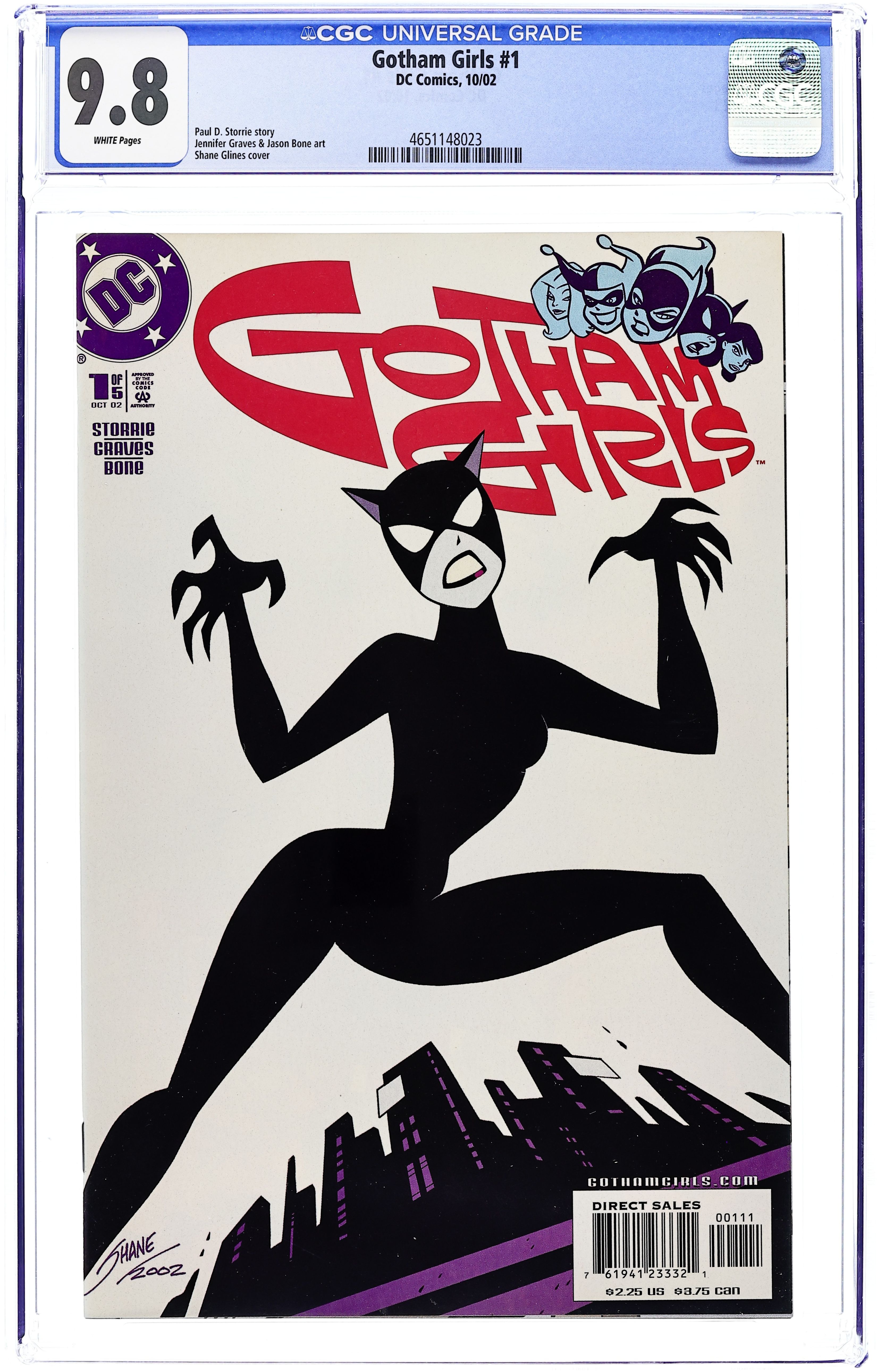 WRITTEN BY PAUL STORRIE; ART BY JENNIFER GRAVES AND J. BONE; COVER BY SHANE GLINES In stores August 14. The women of the hit WB Online webtoon burst into the animated DC Universe in an action-packed miniseries! Unable to resist a golden opportunity to fund her beloved lion preserve, Catwoman heists a vial of a mysterious formula for a shady company ? only to discover she's actually working for Poison Ivy and mallet-wielding sidekick Harley Quinn. That sets off an every-villain-for-herself chase across Gotham's rooftops ? and attracts the attention of both Batgirl and officer Renée Montoya, who reluctantly team up to join in the fray! For more information, see the feature article. FC, 32 PG. (1 OF 5) $2.25 See also Batman: Gotham Adventures Cover price $2.25.