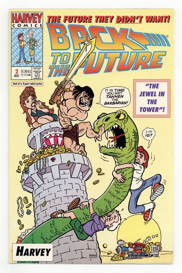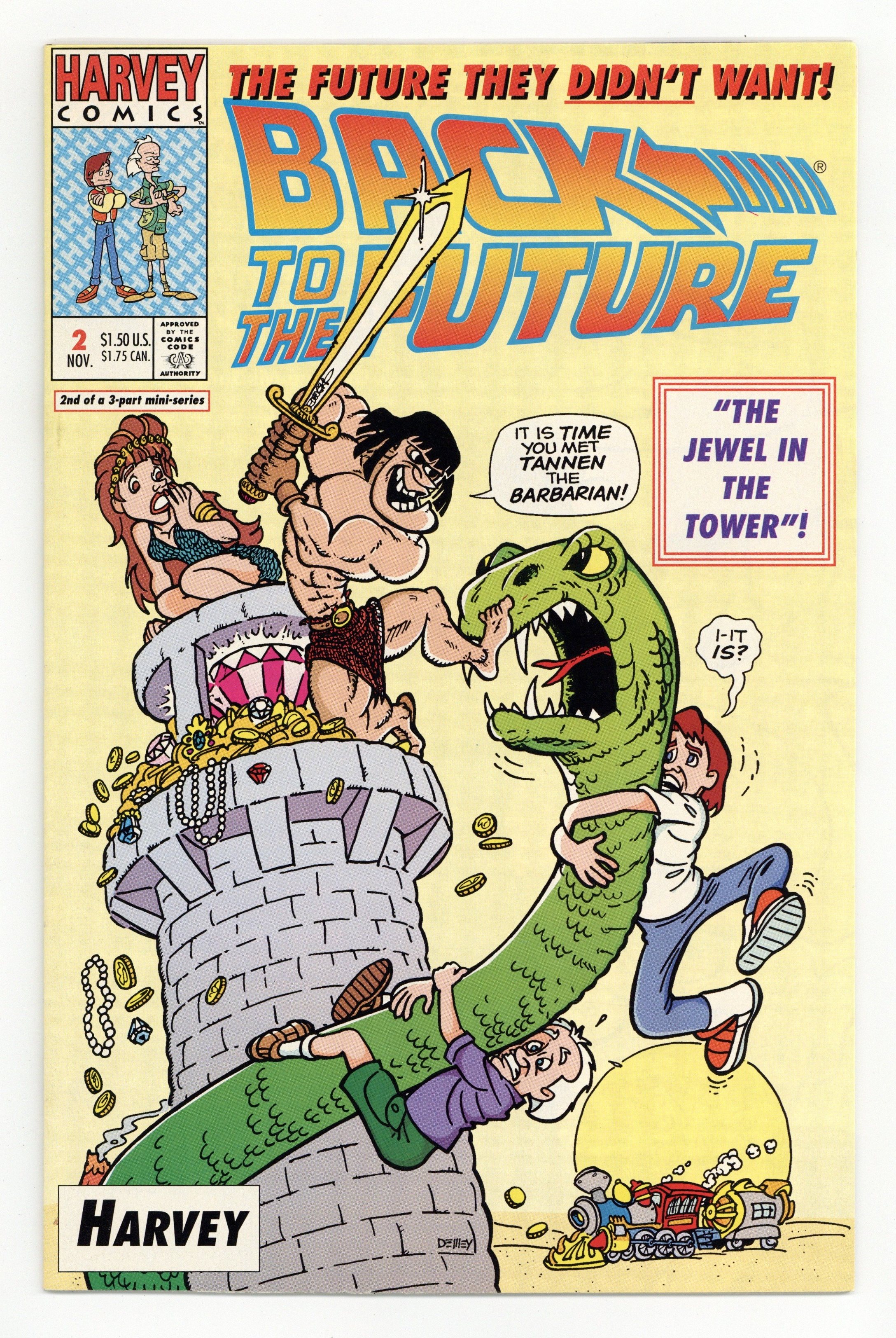 $15.00Cover art by Nelson Dewey. The Jewel in the Tower, script by Dwayne McDuffie, art by Nelson Dewey; The gang is stuck in the far future, where Tannen the Barbarian walks the earth, and Doc Brown has amnesia. 36 pages, full color. Cover price $1.50.
