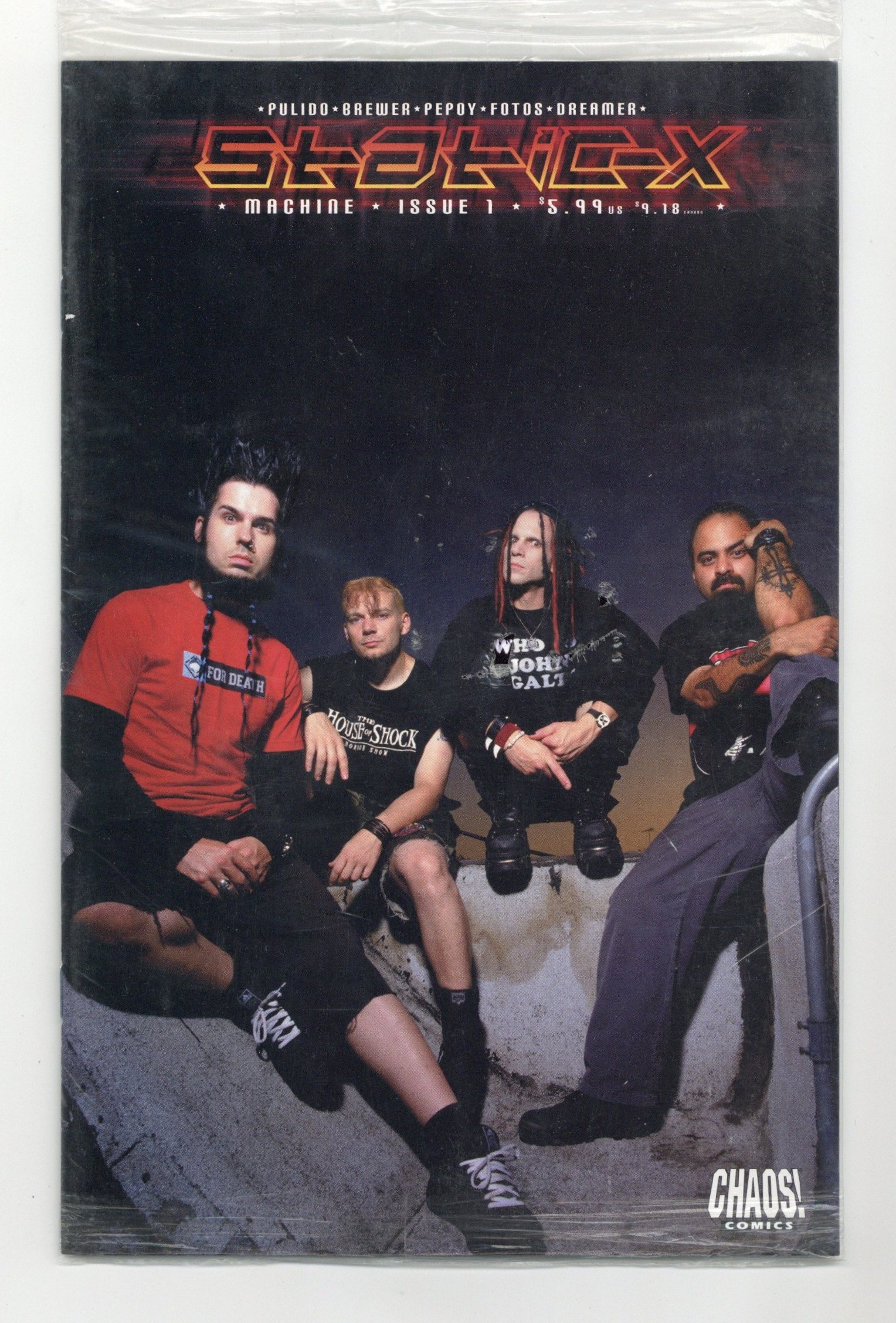 Polybagged with an exclusive CD! By Brian Pulido & David Brewer First in a series of Sci-Fi thriller one-shots! With over 1,000,000 CDs sold and lead songs on the Queen of The Damned and Resident Evil soundtrack albums, the industrial metal band Static-X is taking comics by storm, supported by an aggressive internet advertising and global touring campaign designed to drive new customers to comic stores! Set in the techno-doom-laden future to come, the world is ruled by The State. Corporations and commercialism have been abolished. Wayne, Ken, Tony and Tripp (members of Static-X) are cybernetically-enhanced workers, leading insignificant lives as slaves to The State. Memories intrude, reminding them of a time when they worked together, nearly inciting a revolution. Are these phantom images truth, or just another implanted memory? Will they learn the real story before it's too late, or will they remain the mindless agents that The State created them to be? Our fate rests in their hands! Exclusive CD includes: the song "This Is Not" and special interview footage of the band, all unavailable anywhere else! Available in Art and Photo cover editions (shipped in a 50/50 mix), each polybagged with an exclusive CD! FC, 32pg $5.99 Cover price $5.99.