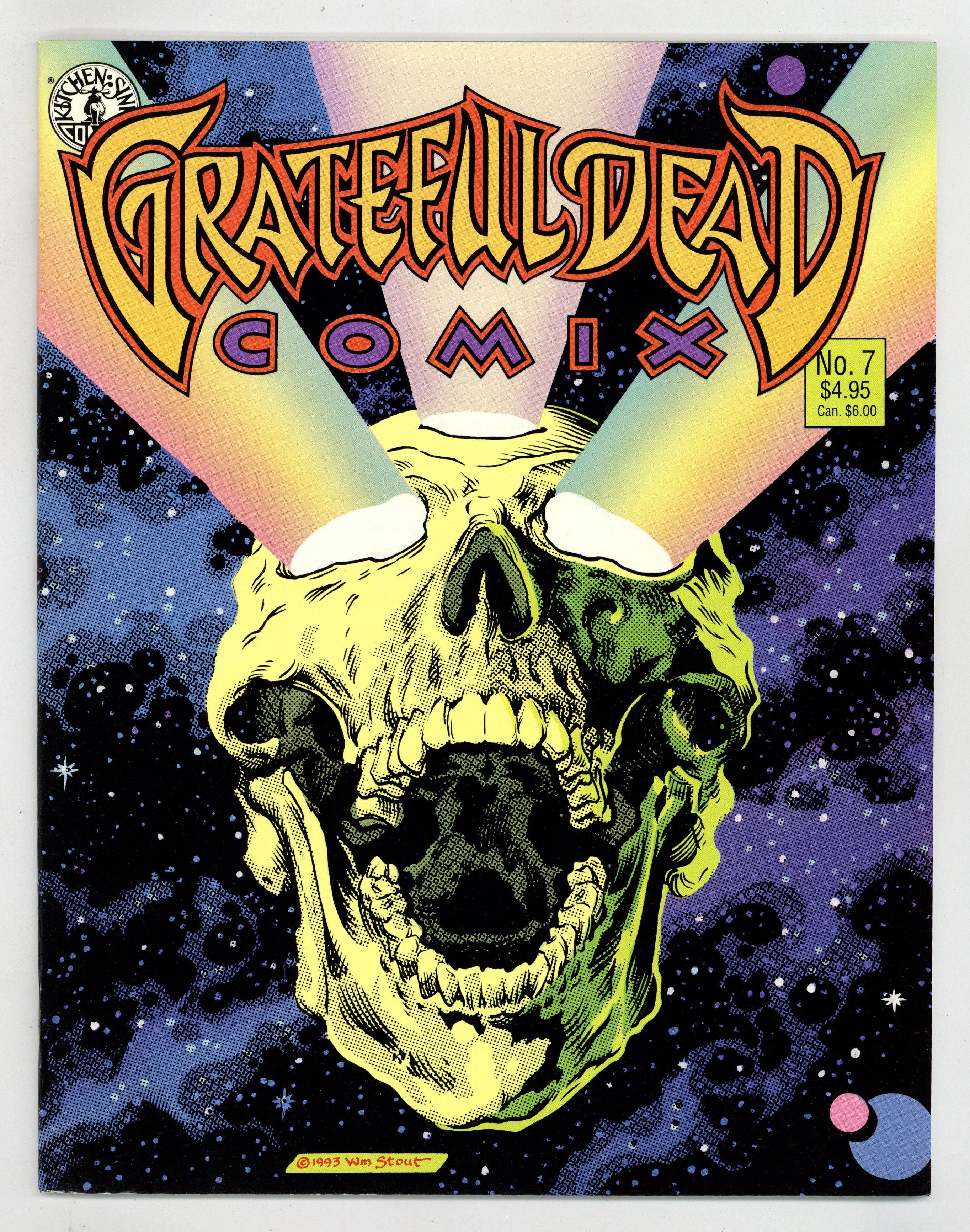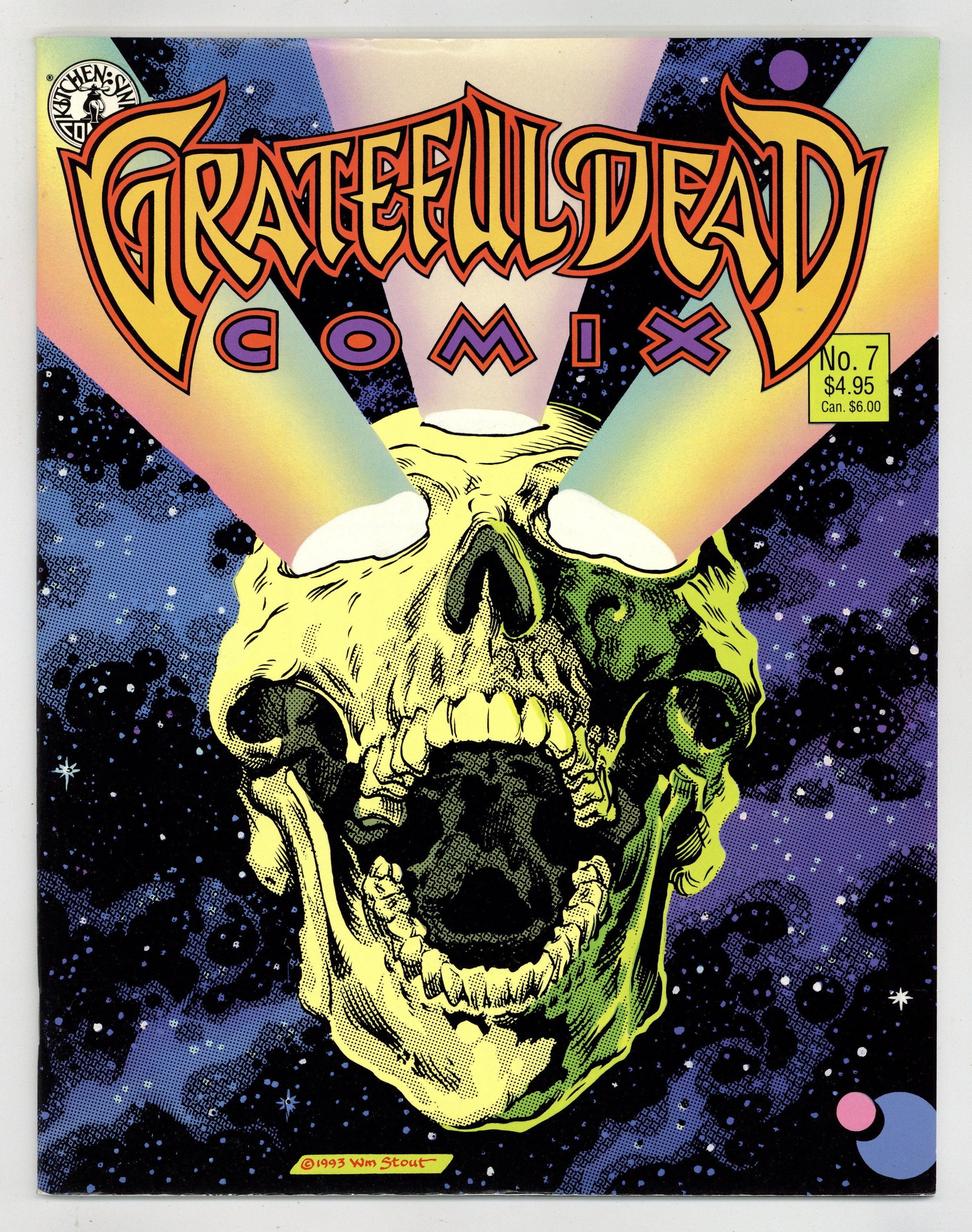 Published 1992 by Kitchen Sink.$20.00Comics about the Grateful Dead lifestyle: Scarlet Begonias by Terry LaBan, and Wheres Jerry? centerfold game by Carole Sobocinski. Comics adaptations of Grateful Dead songs: Alligator by Dan Burr of Kings in Disguise, Eagle Mall continued, by Tim Truman, and Playin in the Band by Chris OLeary. Cover by William Stout. Final issue in magazine format. Full color; 36 pages. Cover price $4.95. Cover price $4.95.