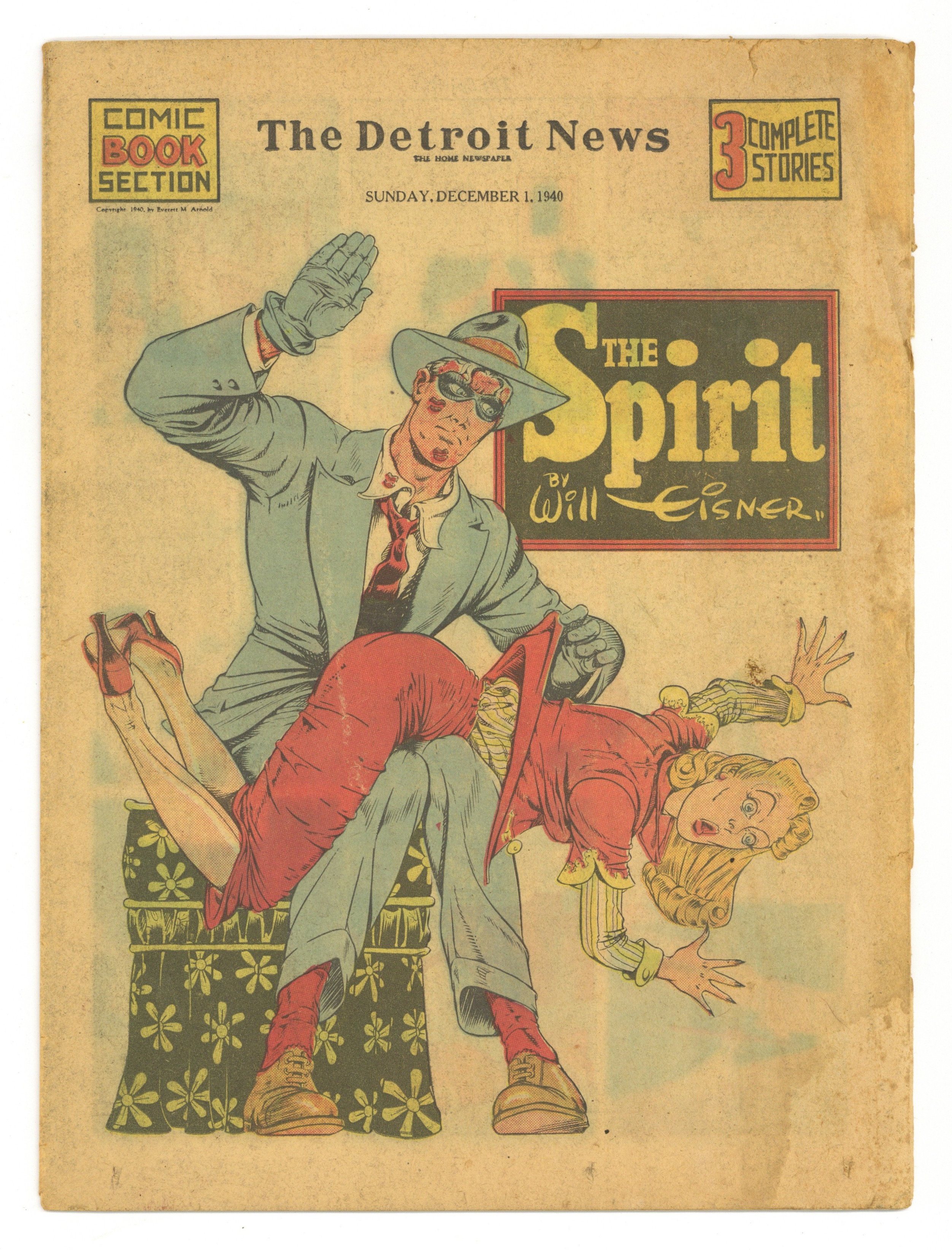 Spirit Weekly Newspaper Comic Insert. 7-1/2 x 10 inches, 16 pages, full color, all newsprint with no slick cover. Ellen spanking by Spirit on cover, as well as inside. Will Eisner art on the first 3 pages, J. Cole art through the rest.