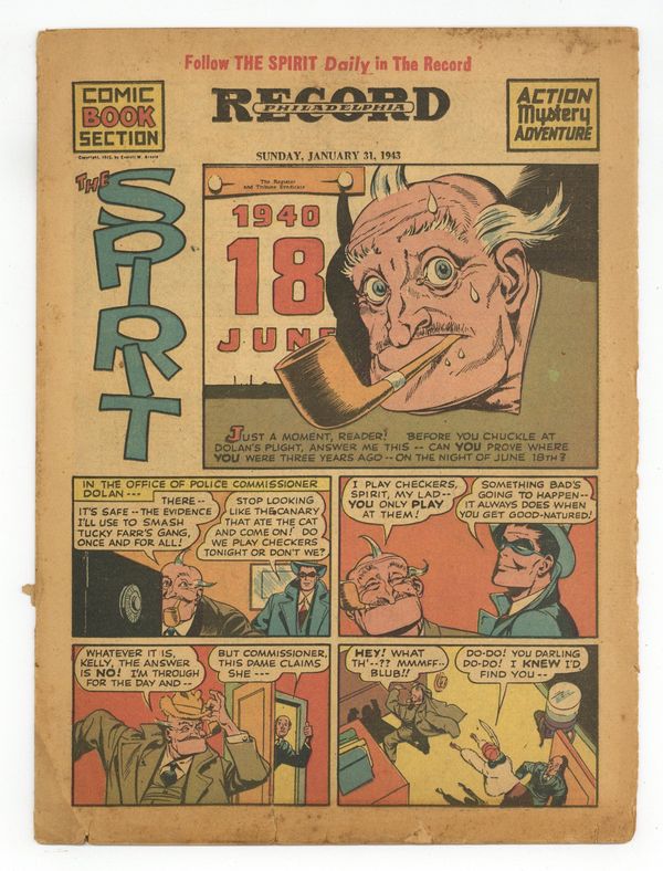 Spirit Weekly Newspaper Comic Insert. 7-1/2 x 10 inches, 16 pages, full color, all newsprint with no slick cover. Eisner/Fine/Quality staff assist on Spirit.