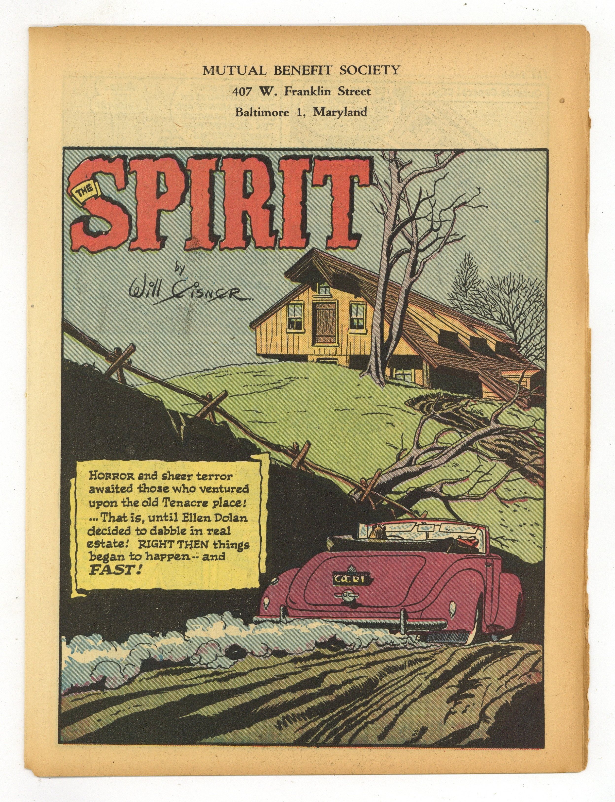 Spirit Weekly Newspaper Comic Insert. 7-1/2 x 10 inches, 16 pages, full color, all newsprint with no slick cover. Wellman/Woolfolk scripts, Fine art with unknown staff assists.