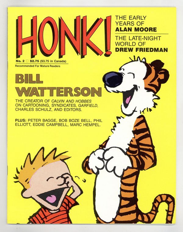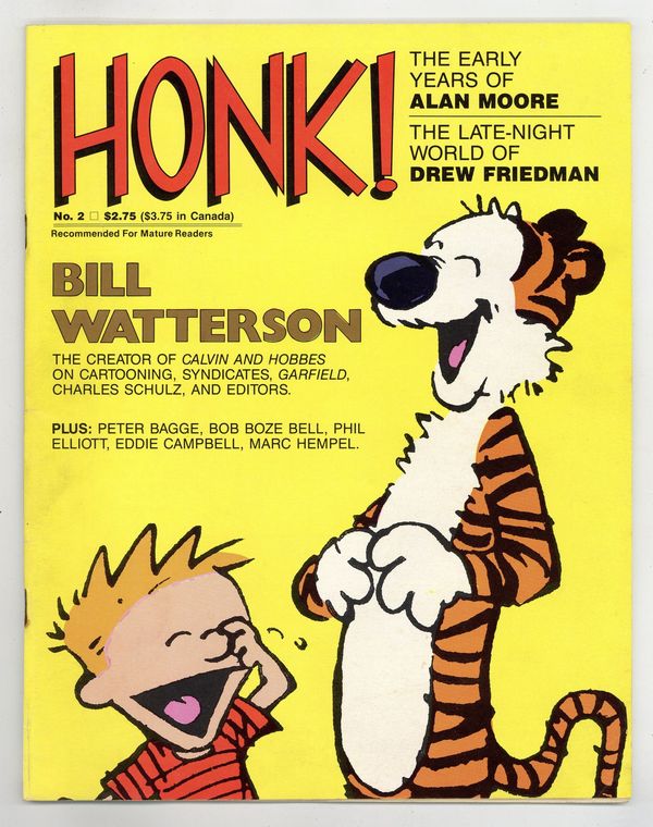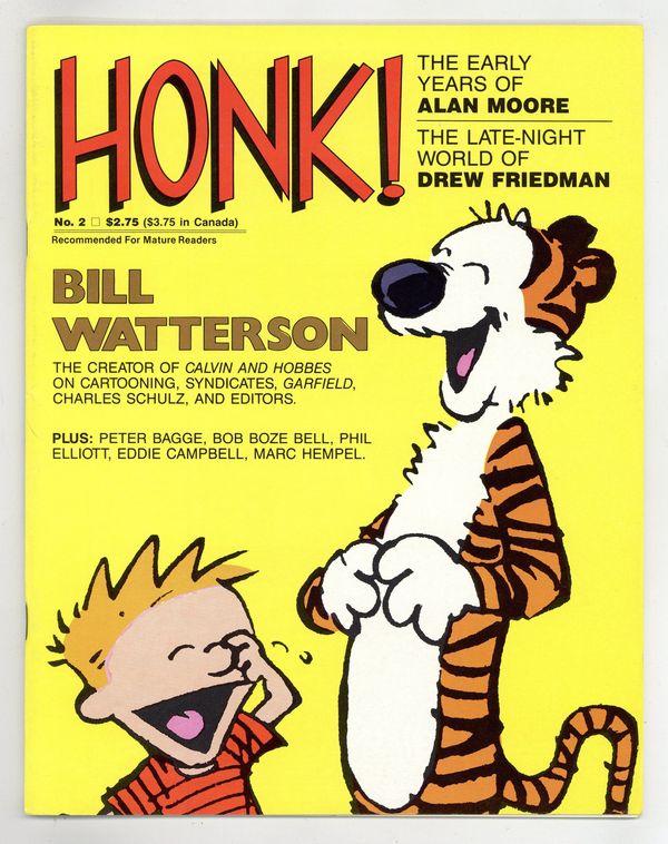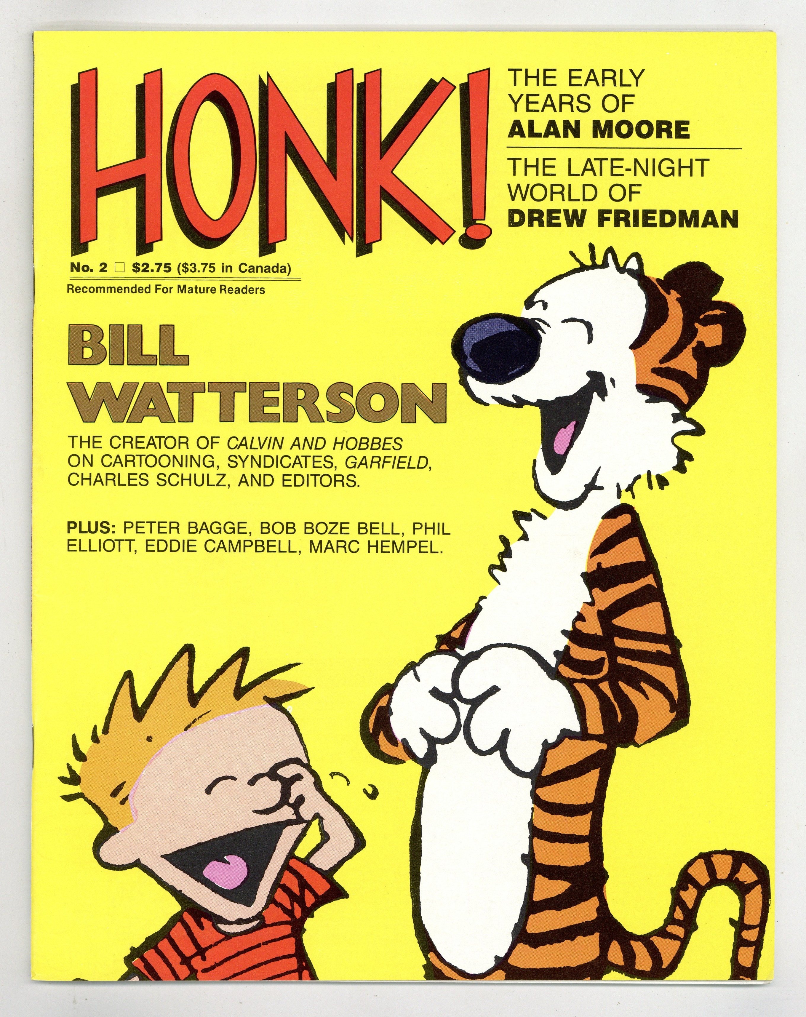 Cover art by Bill Watterson. "It's Spring," script and art by Marc Hempel; The joy of Spring. "Main Course," script and art by Trevs Phoenix and Eddie Campbell; Discursive food-related stories. "The Misadventures of Dostoyevsky," script and art by David Miller; Dostoyevsky ends up in one of his stories. "The Class Reunion," script and art by Bob Boze Bell; Strips and gags about class reunions. "A Dinner Treat," script and art by Marc Hempel; A man eats too much. "Paris: A Trashcan Travelogue," script and art by John Bagnall; A tour of Paris. "Light Conversation," script and art by Marc Hempel; Dating problems in cartoon land. "Rodney: The Premonition II," script by Eddie Campbell, art by Phil Elliott. "Brasso With Rosie" article by Alan Moore, art by Peter Bagge; Anecdotes about Moore's parents and relations. "Bill Watterson" article, script by Andrew Christie and Bill Watterson, art by Bill Watterson; An interview with Watterson accompanied by three cartoons and fourteen of his newspaper strips. "The Late Night World of Drew Friedman" article, script by Mark Waid and Drew Friedman, art by Drew Friedman; Interview with Friedman accompanied by ten samples of his work. Untitled A Tale from Gimbley story, script and art by Phil Elliott. 52 pgs., B&W. Cover price $2.75.