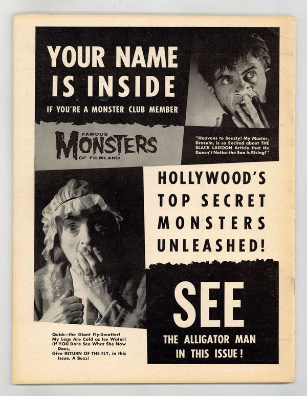 $260.00Features in this issue include: plot synopses of all three Creature films; a preview of The Alligator People; a feature on Monster greeting card artist Oz; a list of makeup contest winners; and more. Painted cover by Albert Nuetzell is of Bela Lugosi donning test makeup for his role as "Sayer of the Law" in Island of Lost Souls. Cover price $0.35.