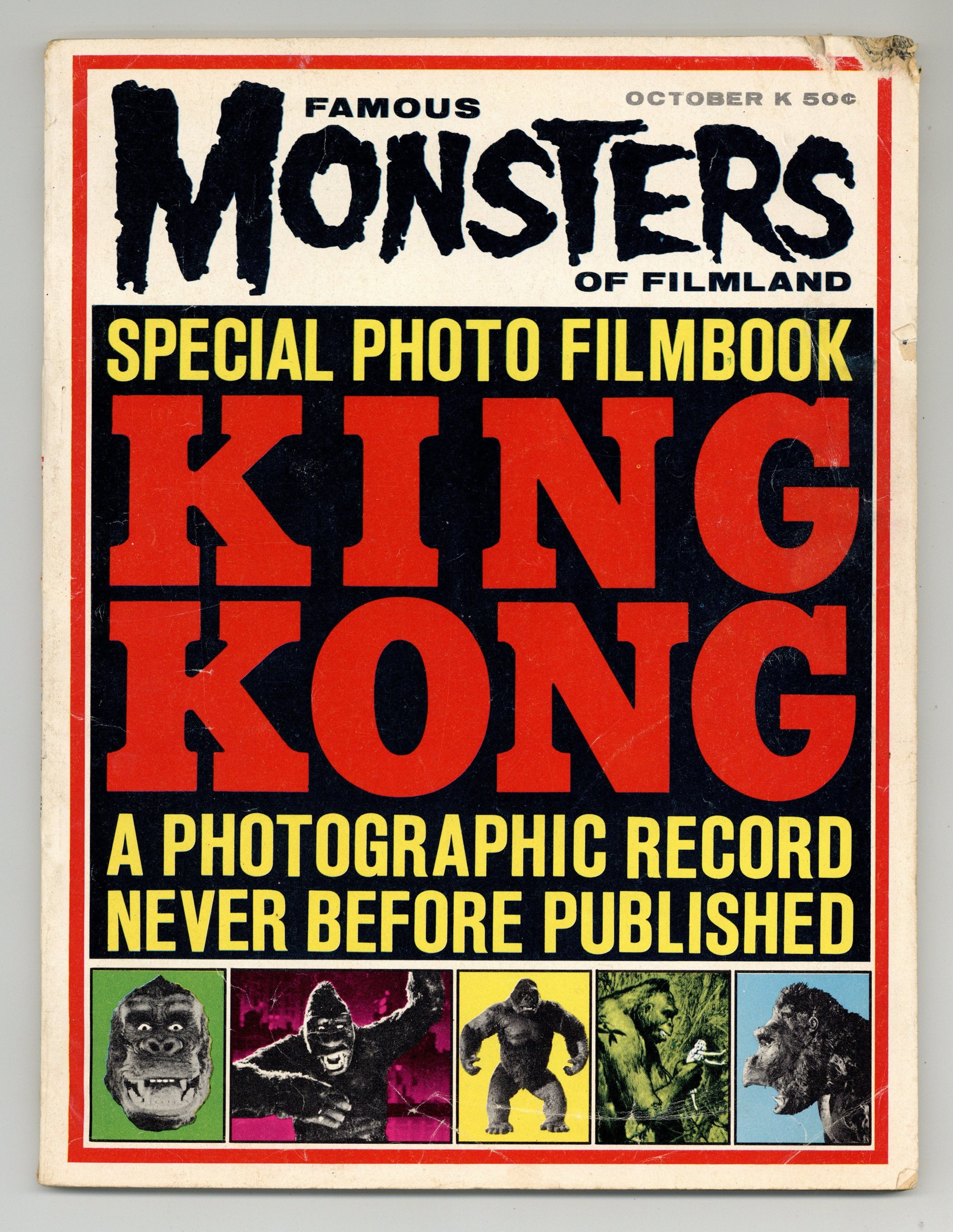 Features in this issue include: "Vincent the Invincible" (about Vincent Price); a humorous Larry Talbot (The Wolfman) letter; an article about amateur filmmakers; and more. The cover features several small stills from King Kong. Cover price $0.50.