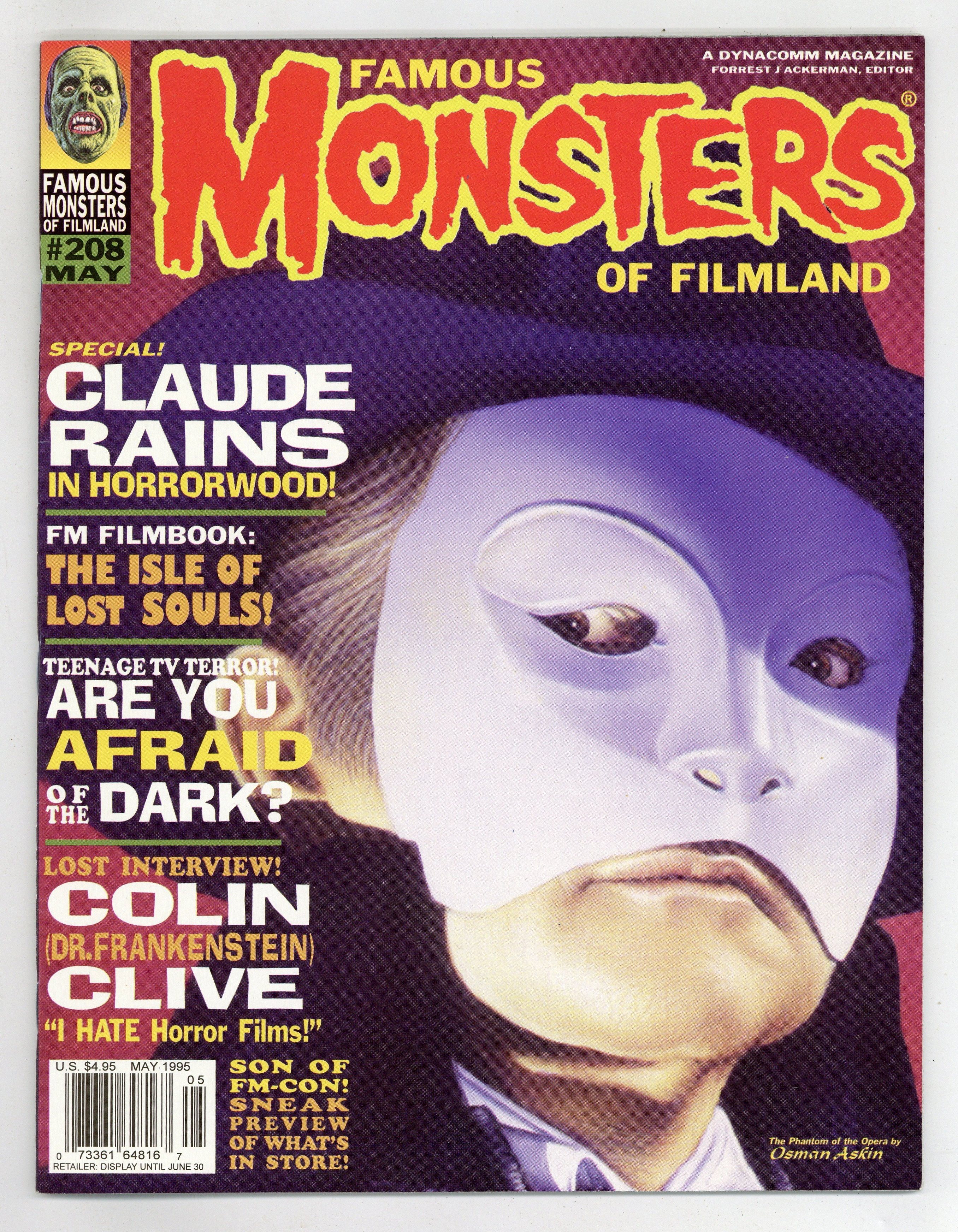 Features in this issue include: articles on Claude Rains and Colin Clive; feature on Nickelodeon's Are You Afraid of the Dark?; piece on Famous Monsters convention; "The Hallmarks of Hammer" by Forry Ackerman; and more. Cover painting of Claude Rains as The Phantom of the Opera is by Osman Askin. Cover price $4.95.
