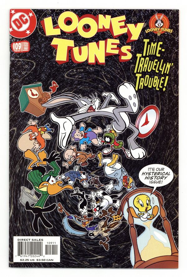 Stories by Sholly Fisch. Art by Omar Aranda & Alberto Saichann. Featuring: Elmer Fudd and the Looney Tunes in "Hysterical History"! Plus: Wile E. Coyote and the Road Runner in "Hunt & Peck"; Tweety and Sylvester in "Toga Tweety"; Bugs Bunny and Yosemite Sam in "Rabbits & Karats"; and Marvin the Martian, K-9, Daffy Duck and Porky Pig in "Space for Rent"! 40 pages, full color. Cover price $2.25.