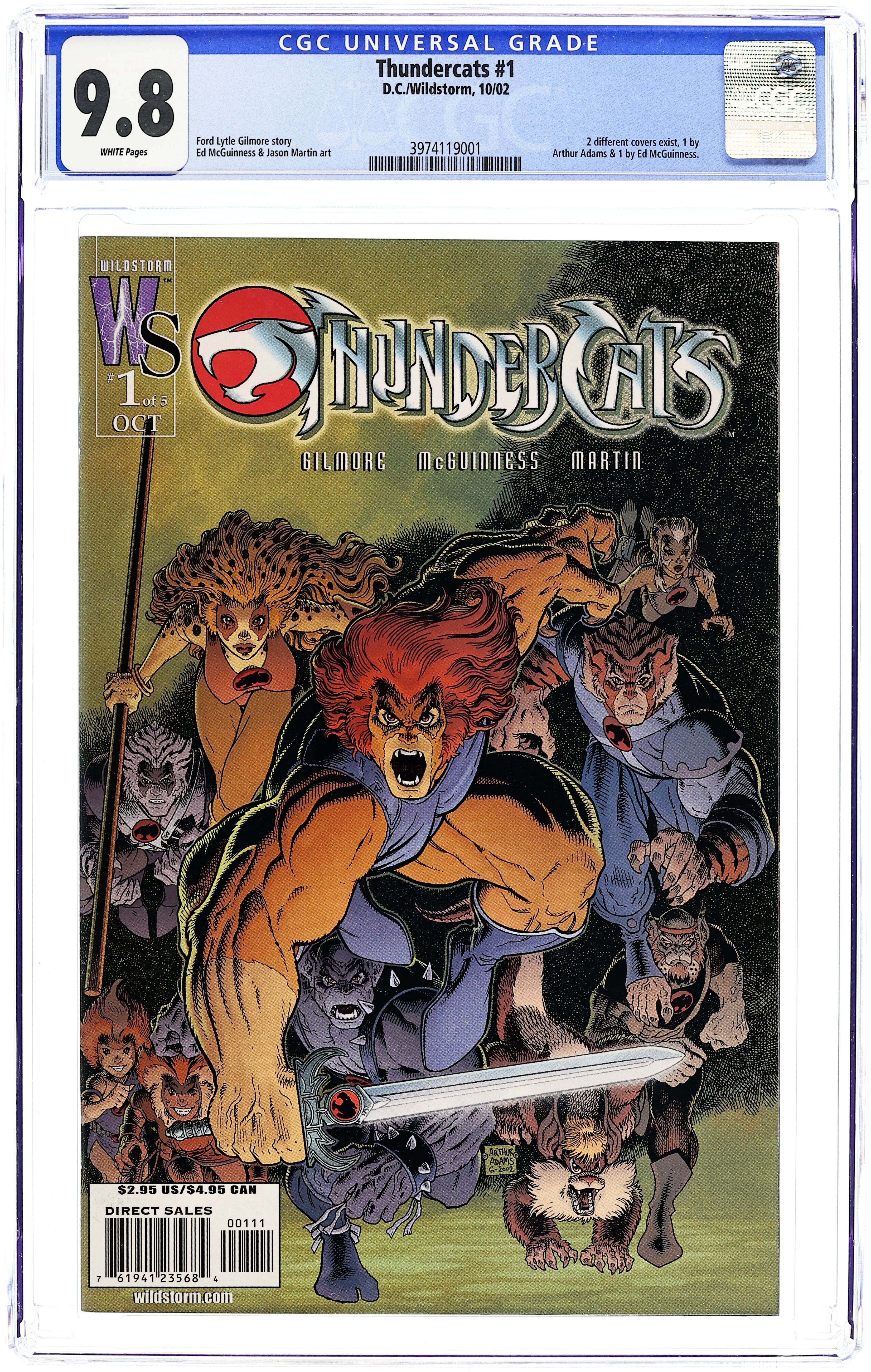 WRITTEN BY FORD LYTLE GILMORE; ART AND COVER BY ED MCGUINNESS AND JASON MARTIN; VARIANT COVER BY JIM LEE. The highly anticipated miniseries based on the popular '80s cartoon continues! To aid in his continuing quest to destroy the Thundercats once and for all, Mumm-ra solicits the help of past allies Slythe and the mutants ? vowing that their stupidity will not interfere with his plans again. When the mutants attack Lion-O, Tygra and Hachiman while bringing down the Feliner ship, the stage is set for the battle royale every Thundercats fan has been waiting for! Note: This issue will ship with two covers. All orders will be filled with covers by Ed McGuinness & Jason Martin (50%) and Jim Lee (50%). FC, 32 PG. (2 OF 5)$2.95 Cover price $2.95.