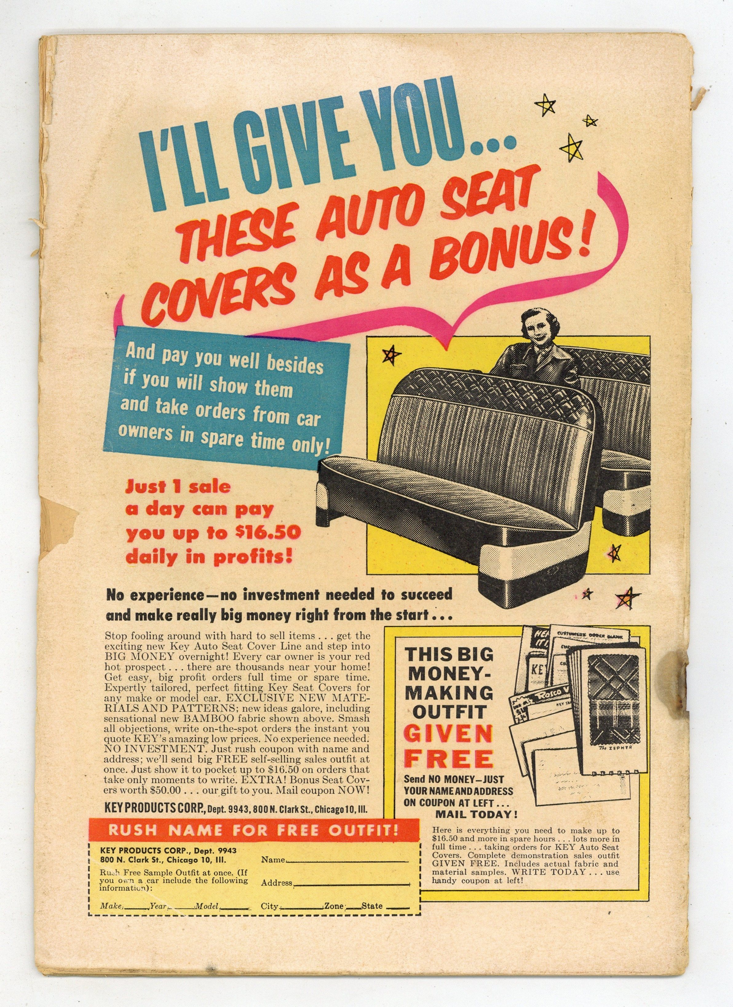 $14.25- INCOMPLETE. Multiple pages missing, interrupts art and story. 5" cumulative spine split (taped). Cover detached. Cover oxidation with chipping.