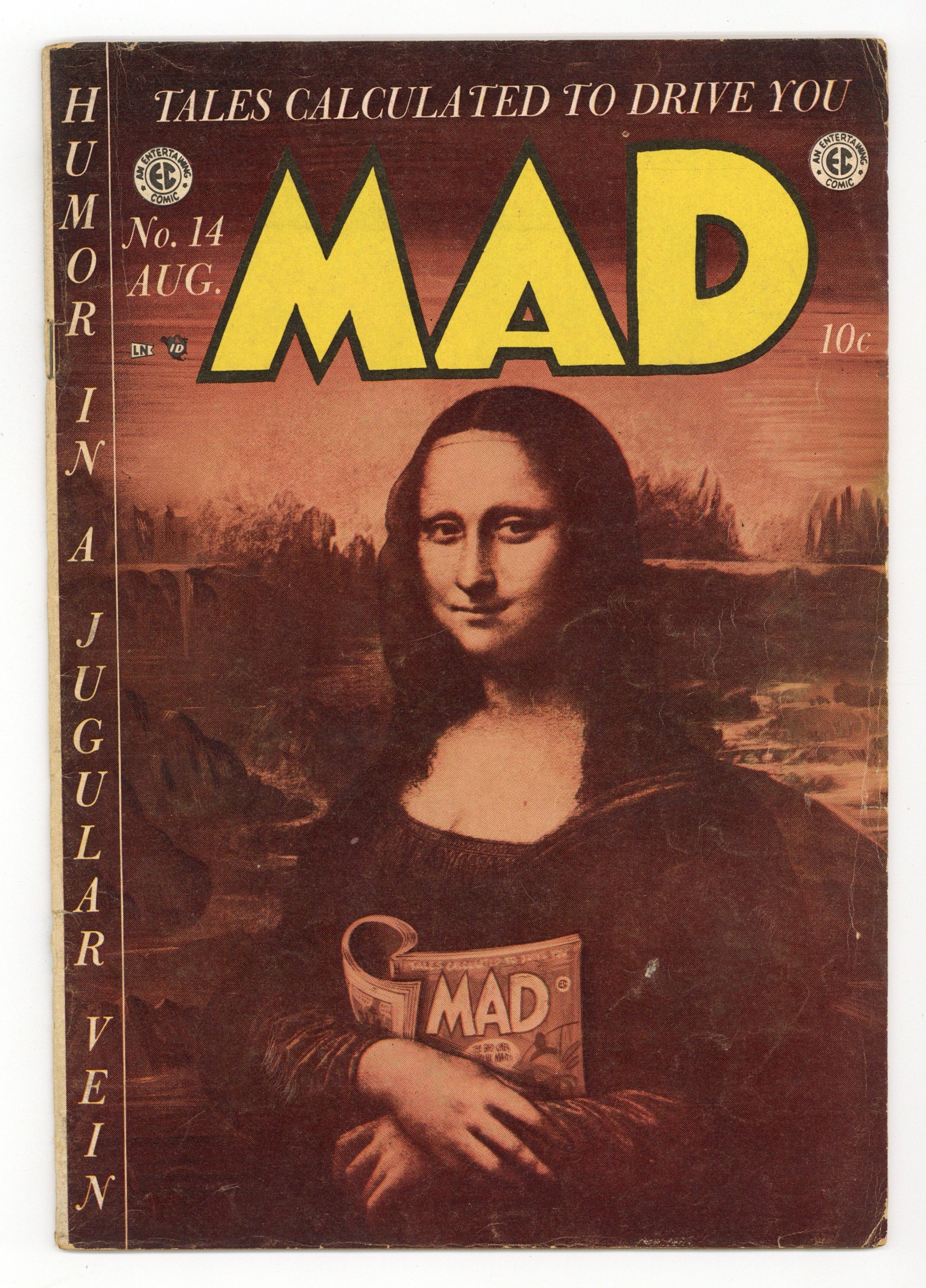 Painted cover is a parody of Leonardo Da Vinci's Mona Lisa. "Manduck the Magician," script by Harvey Kurtzman, art by Will Elder; Manduck is reduced to using his hypnotic spells to sell snake oil on the street, until he matches spells with Lamont Shadowskeedeeboomboom; Parody of the comic strip Mandrake the Magician. "Movie... Ads!", script by Harvey Kurtzman, art by Wally Wood; The differences between scenes in a movie and the way the movies are advertised. E. C. Fan-Addict Club! ad. "The Countynental!", script by Harvey Kurtzman, art by Jack Davis; Parody of a short-lived 1952 TV show, "The Continental." "Plastic Sam!", script by Harvey Kurtzman, art by Russ Heath; Plastic Sam meets an imitation who is a bank robber; Parody of Plastic Man (Quality, 1943 series). 36 pgs., full color. $0.10. Cover price $0.10.