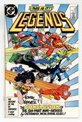 Legends Chapter 21. Darkseid continues his Operation Humiliation, which is an attempt to rid Earth's of its legendary costumed heroes. Guy Gardner, Batman, Superman, Wonder Woman (making her first post-Crisis appearance), and others battle an assortment of super-villains. Darkseid's para-demons and dogs of war also attack. Features the first appearance of the new Justice League. Plotted by John Ostrander and scripted by Lein Wein, with pencils by John Byrne and inks by Karl Kesel. Cover price $0.75.