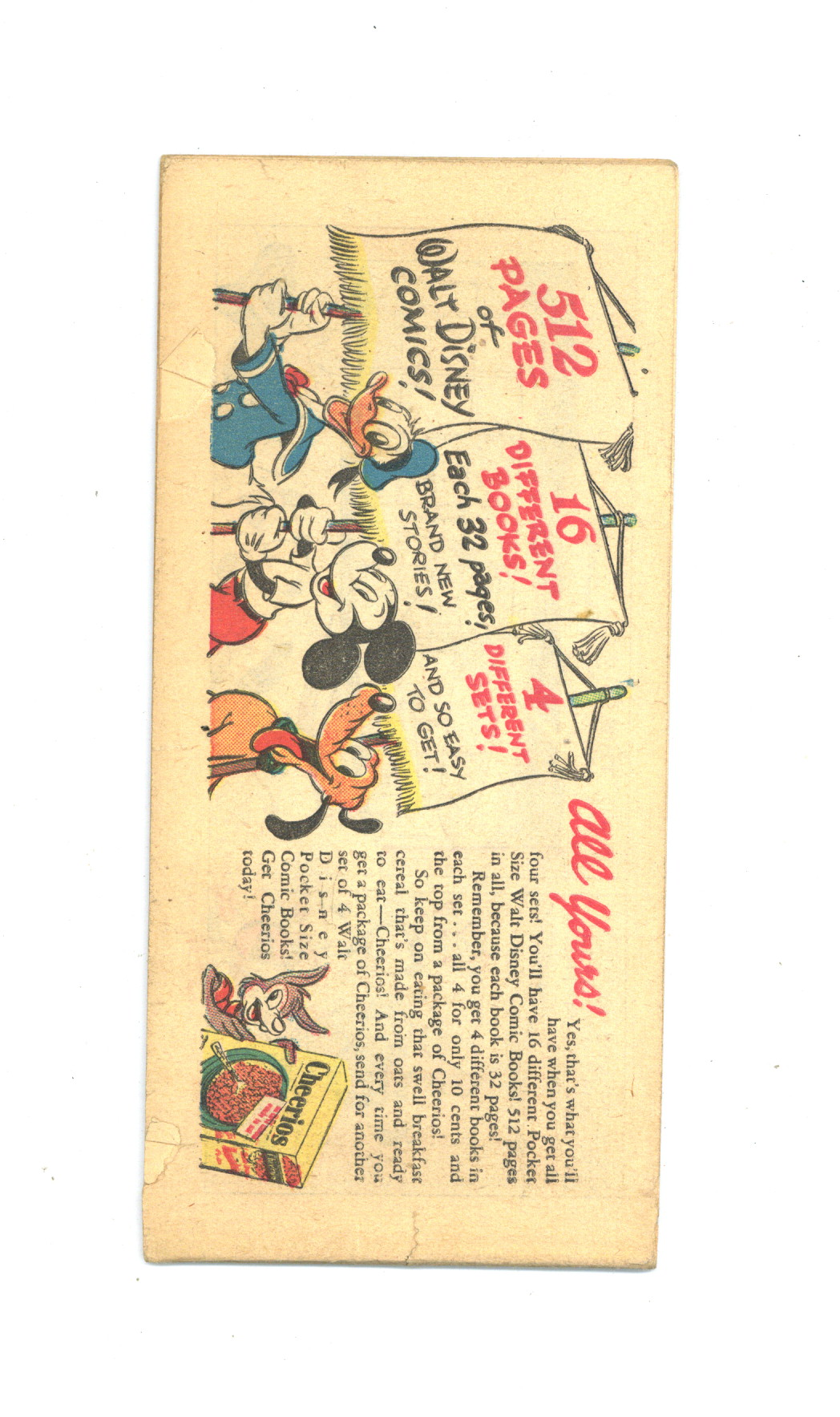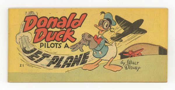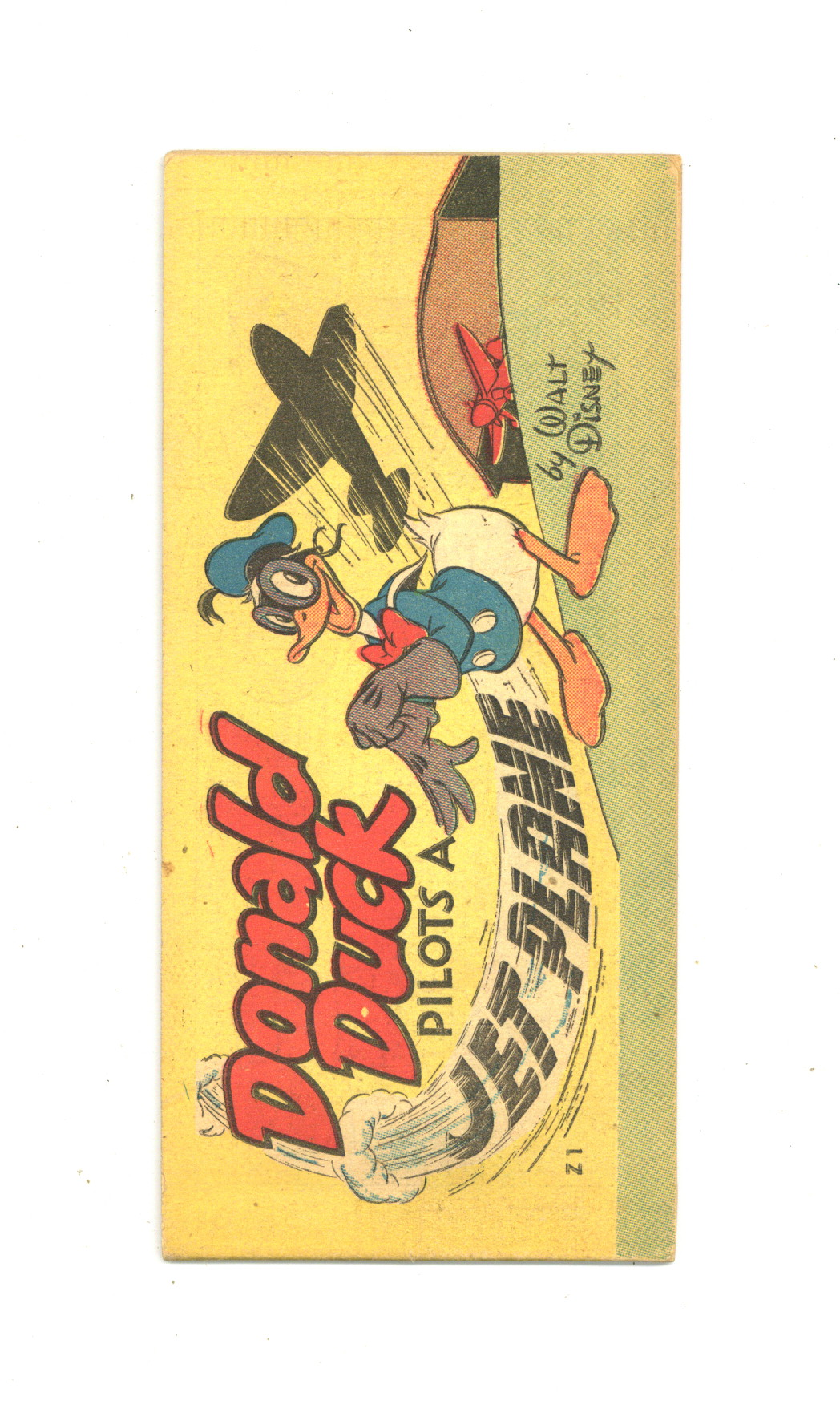 Tags: Cheerios Disney giveaways (part 13), Mini ComicPublished 1947 by Walt Disney Productions.$18.00Donald Duck Pilots a Jet Plane Mini Comic (1947), a Cheerios premium giveaway mini comic. Full color, Measures 3-1/4 x 6-7/8. 32pgs cover to cover. #Z1. Copyright 1947. A Disney title published by Western Publishing.