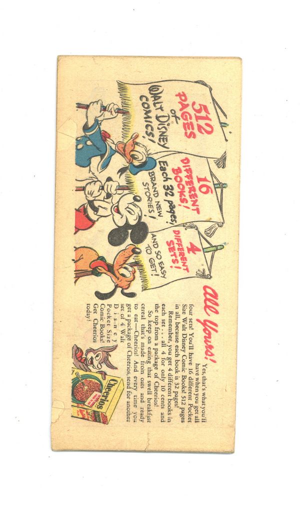 Tags: Cheerios Disney giveaways (part 13), Mini ComicPublished 1947 by Walt Disney Productions.$20.50Donald Duck Pilots a Jet Plane Mini Comic (1947), a Cheerios premium giveaway mini comic. Full color, Measures 3-1/4 x 6-7/8. 32pgs cover to cover. #Z1. Copyright 1947. A Disney title published by Western Publishing.