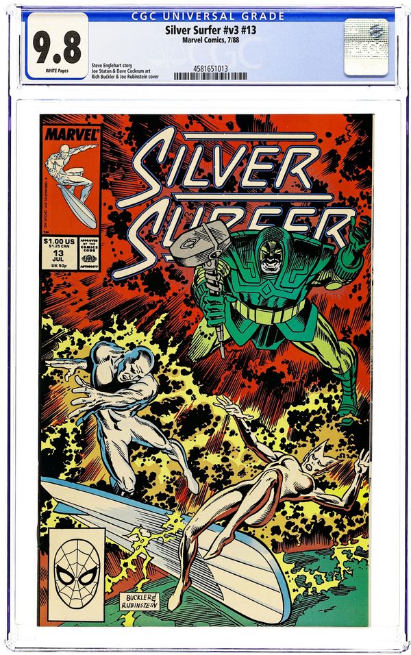 Direct Edition. "Masques!" Story by Steve Englehart. Art by Joe Staton and Dave Cockrum. Someone has been leaving a trail of terror and destruction throughout the Kree Empire in the name of the Silver Surfer. Now, Norrin Radd and Nova must face the judgment of Ronan the Accuser and the power of his Cosmic Rod! 32 pages. Cover price $1.00.