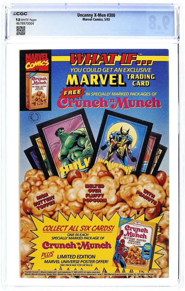 Direct Edition. An X-Men Anniversary Spectacular - "Legacies!" Story by Scott Lobdell. Art and cover by John Romita, Jr. And Dan Green. Tired of simply reacting, the X-Men decide to take the fight to their enemies. It's all-out mutant action as the Uncanny X-Men battle Magneto's Acolytes with the fate of mankind hanging in the balance. Plus, Nightcrawler returns to the pages of the X-Men! And, one member of the X-Cast contracts the lethal Legacy Virus! NOTE: An unknown percentage of the print run was produced with the foil design misaligned. We do not differentiate between the two, but any slabbed copies listed here with misaligned foil noted on the label will have that notation in our listings as well. 68 pages, full color. Cover price $3.95.