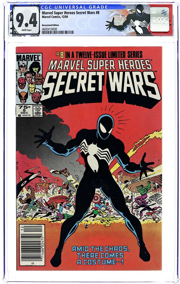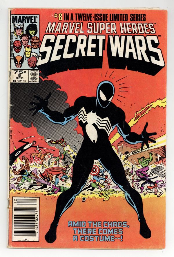 Tags: Chronological Appearances of Spider-Man's Black Costume (part 08 (1st in continuity app.)), Secret Wars (1984) (part 8)$200.00- Residue spots.