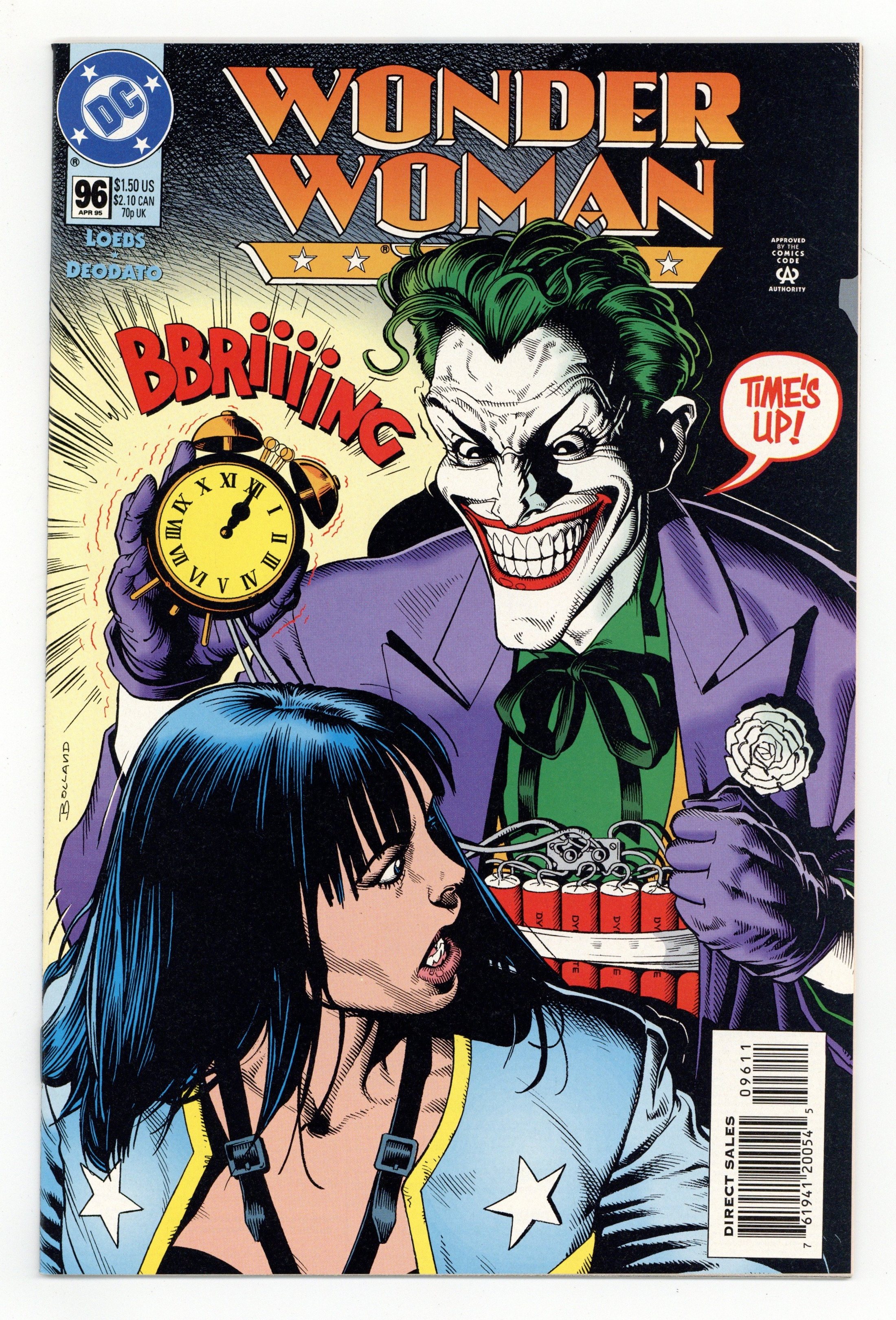 Part 3 of 7 - "Jokers Holiday…!" Written by William Messner-Loebs. Art by Mike Deodato, Jr. The Jokes on Diana and Boston as the Joker come to town to take advantage of the mob-war-inflicted chaos affecting Beantown…and becomes embroiled in the mess when he kills one of the two rival mob bosses. Meanwhile, the new Wonder Woman is learning that her mission in man's world may be more complicated than she ever anticipated. 36 pages, FC. Cover price $1.50.
