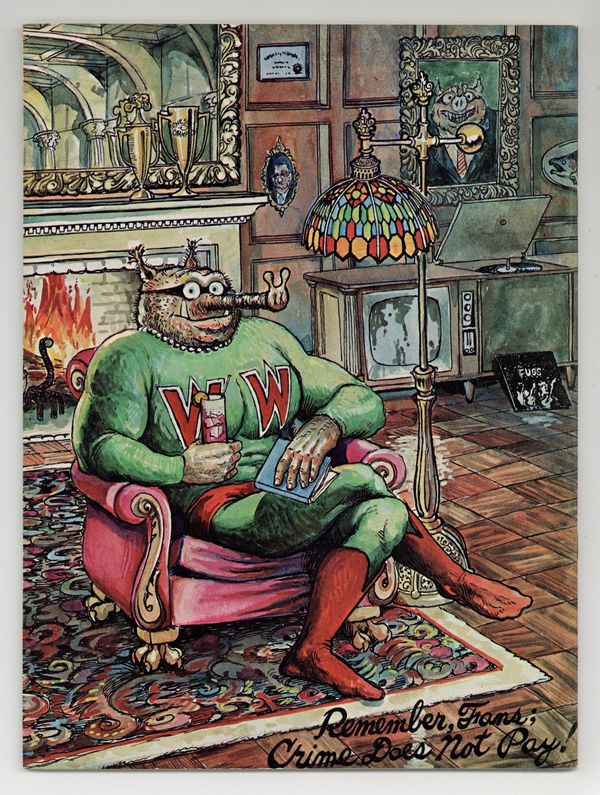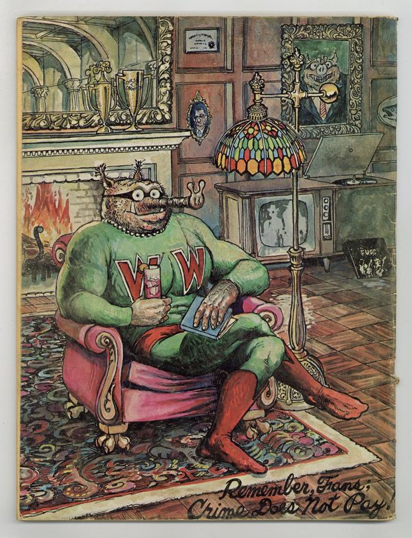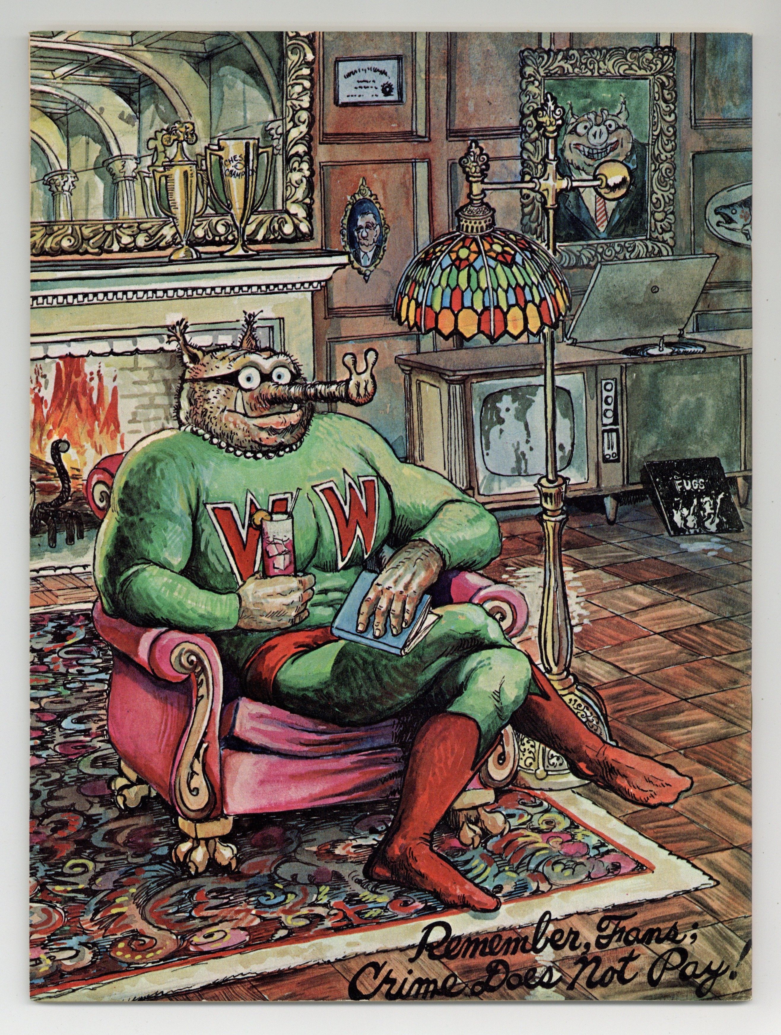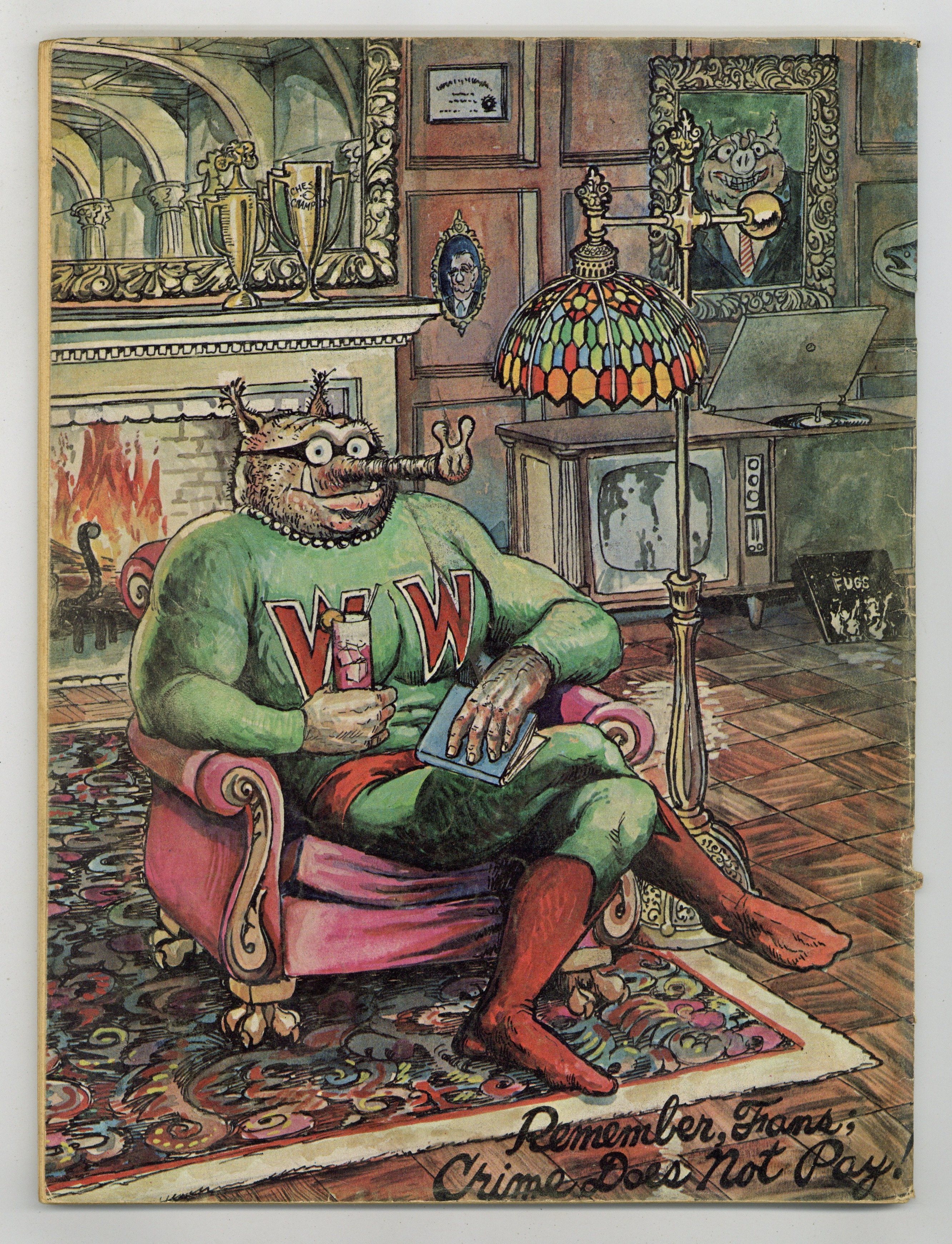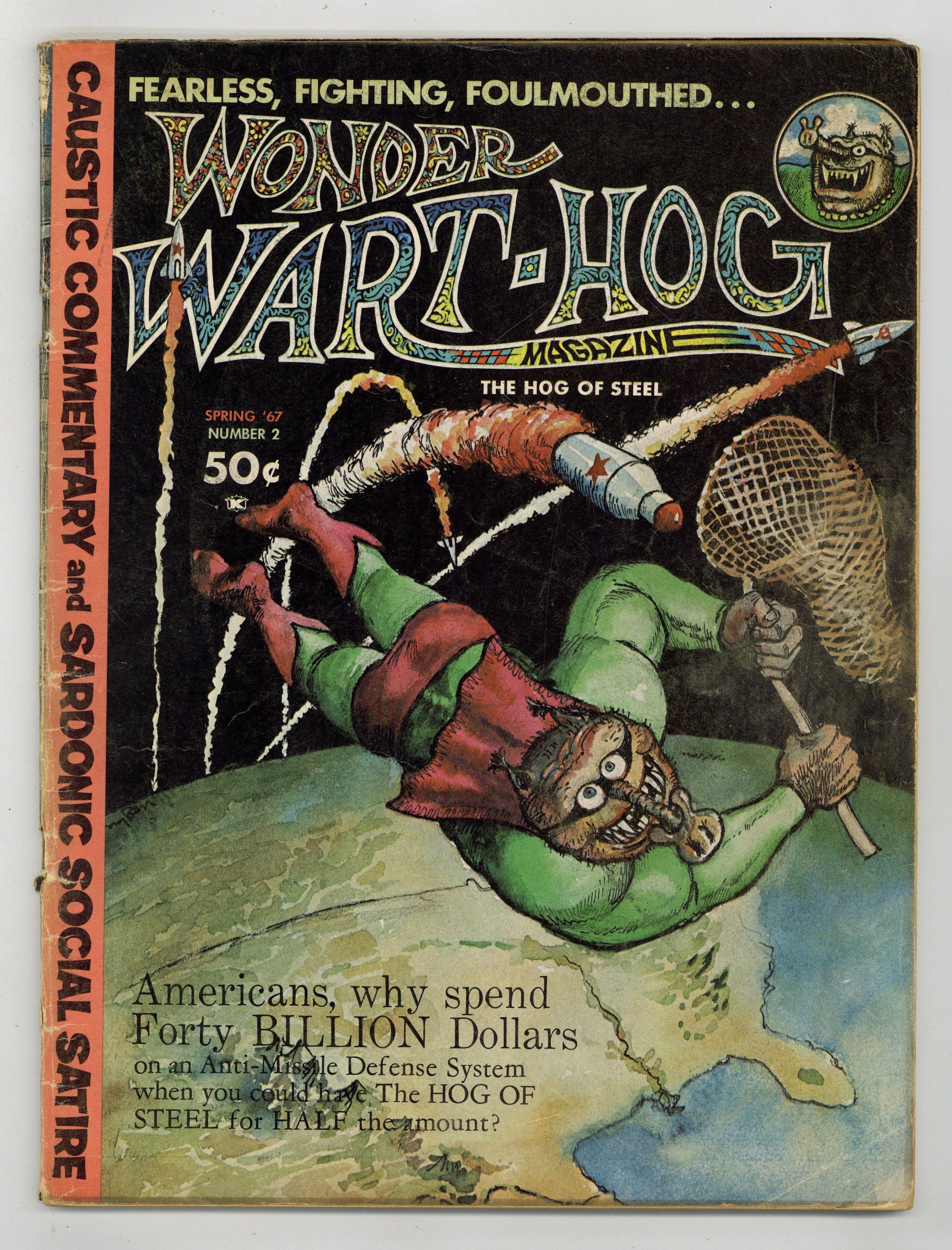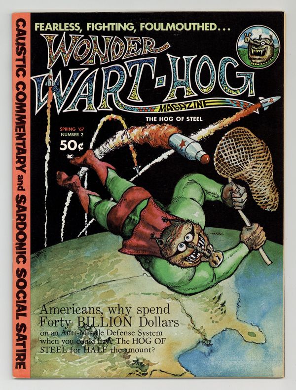 Long before he'd ever drawn his first Furry Freak Bros. Comic strip and long before anyone had ever even heard of underground comix, Gilbert Shelton was filling Pete Millar's humor magazine, Drag Cartoons, with episodes of his satirical strip, Wonder Wart-Hog. In 1967 these strips were collected into two issues of Wonder Wart-Hog, the Hog of Steel. In this issue, there are 7 WWH strips, plus an illustrated text story "Wonder Wart-Hog and The Amazing Disappearing Baseball Team," and, of course, two new full color covers featuringthe Hog of Steel. Cover price $0.50.