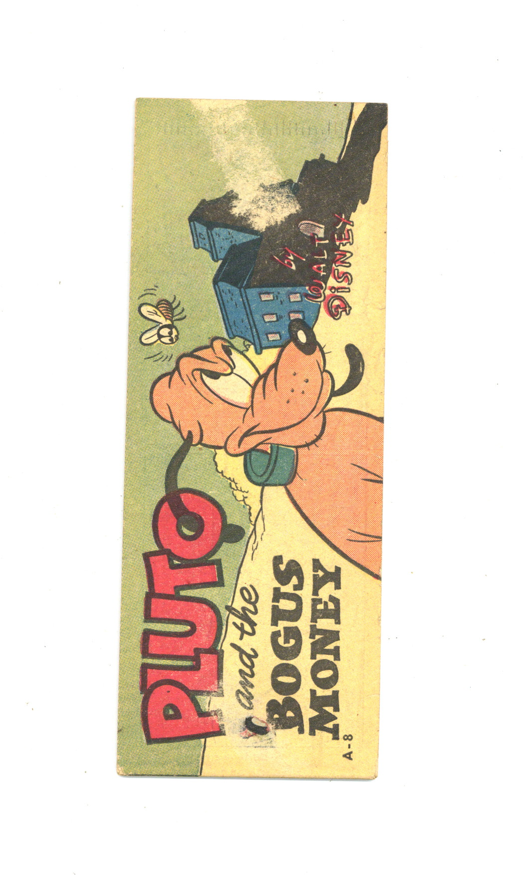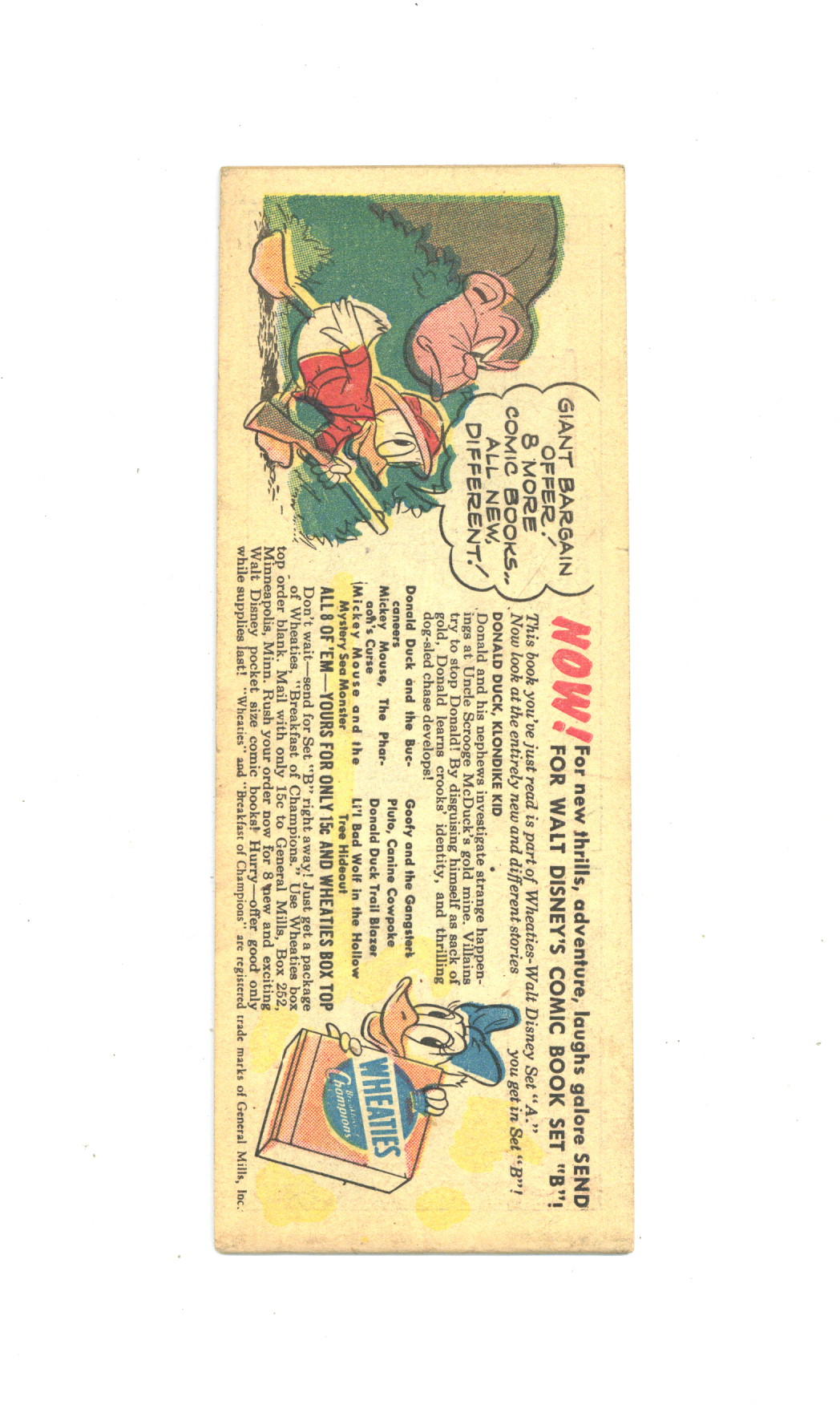 Tags: Wheaties Mini Comics (part A08), Disney Ducks & Mice$8.80Pluto and the Bogus Money Mini Comic. Wheaties 1950-51 32-page promotional comic, 6-7/8 x 3-1/8, Issue #A-8. An original set of 8 mini comics cost 15c plus one Wheaties box top. Four sets of 8 were made, Series A, B, C and D.
