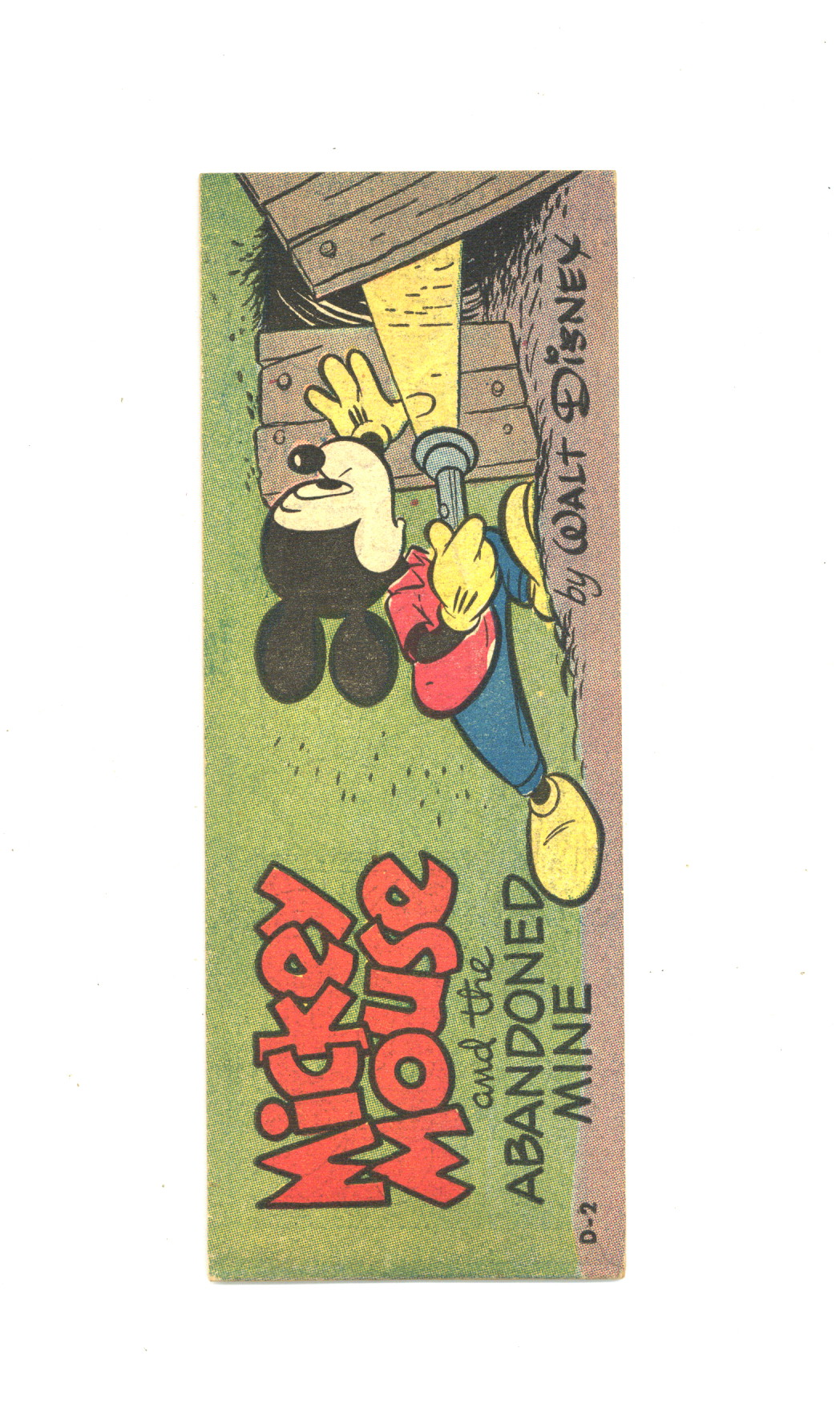 Tags: Wheaties Mini Comics (part D02), Disney Ducks & Mice$8.00Mickey Mouse and the Abandoned Mine Mini Comic. Wheaties 1950-51 32-page promotional comic, 6-7/8 x 3-1/8, Issue #D-2. An original set of 8 mini comics cost 15c plus one Wheaties box top. Four sets of 8 were made, Series A, B, C and D.