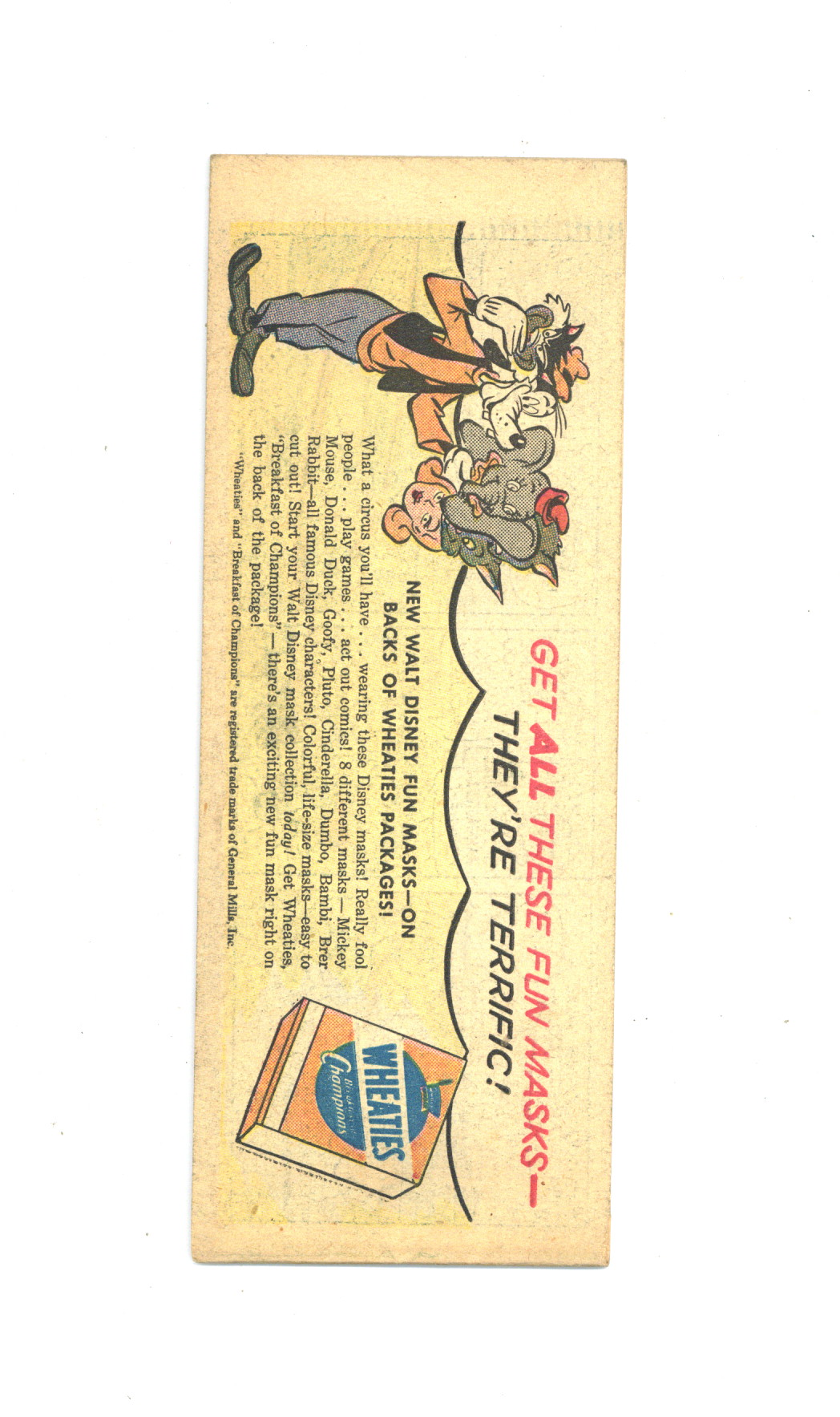 Tags: Wheaties Mini Comics (part D02), Disney Ducks & Mice$22.00Mickey Mouse and the Abandoned Mine Mini Comic. Wheaties 1950-51 32-page promotional comic, 6-7/8 x 3-1/8, Issue #D-2. An original set of 8 mini comics cost 15c plus one Wheaties box top. Four sets of 8 were made, Series A, B, C and D.