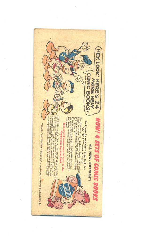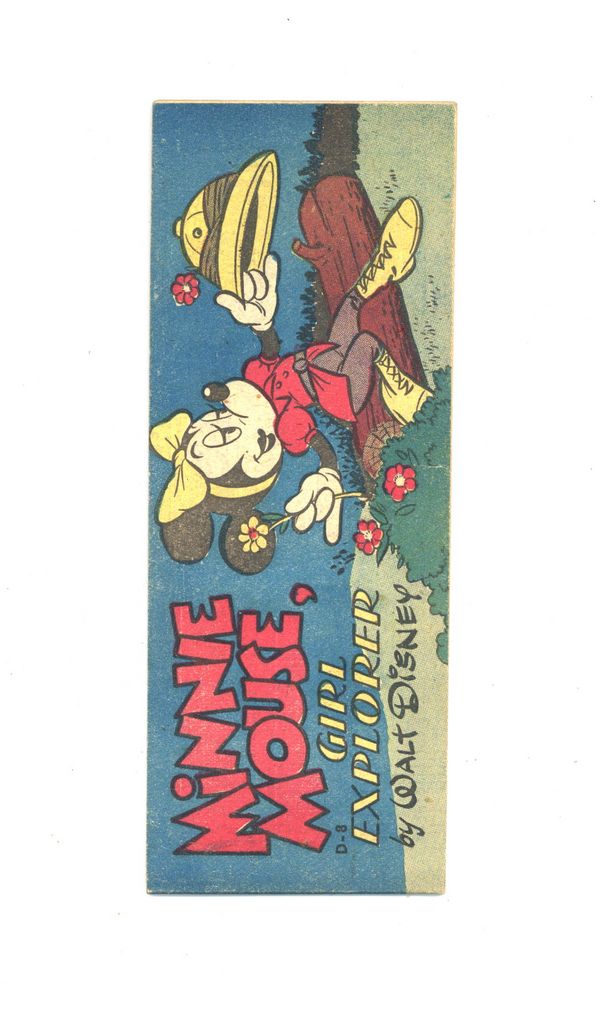 Tags: Wheaties Mini Comics (part D08), Disney Ducks & Mice$14.25Minni Mouse Girl Explorer Mini Comic. Wheaties 1950-51 32-page promotional comic, 6-7/8 x 3-1/8, Issue #D-8. An original set of 8 mini comics cost 15c plus one Wheaties box top. Four sets of 8 were made, Series A, B, C and D.